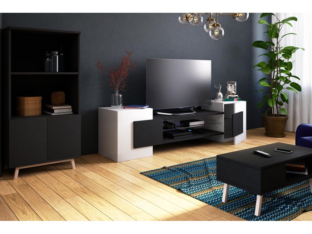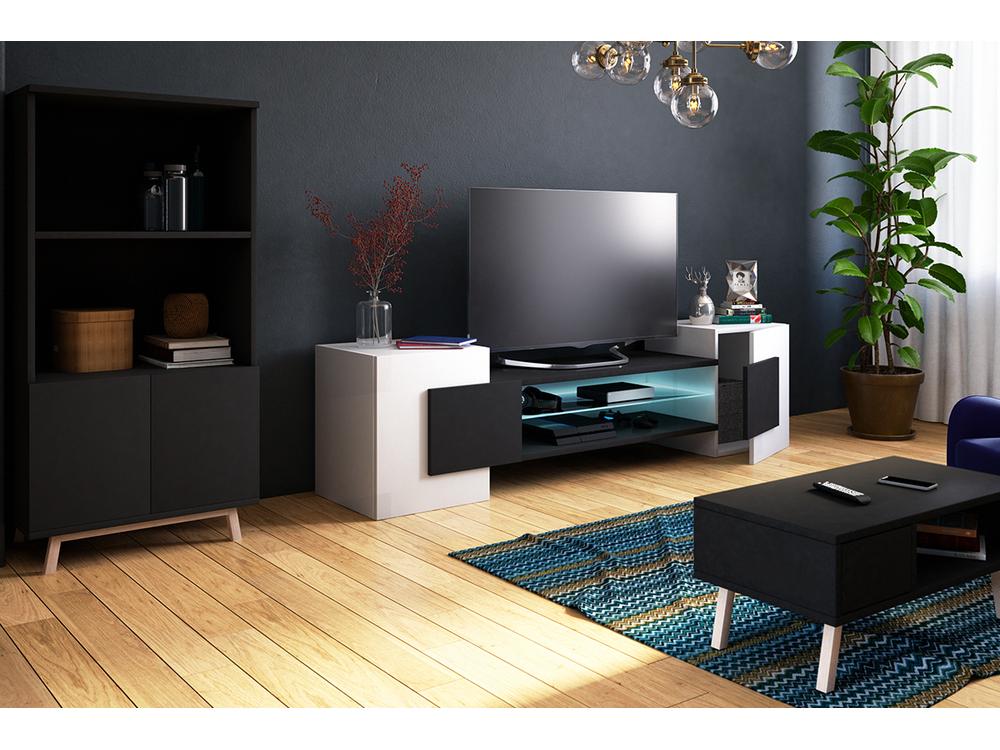 TV skrinka/stolík Gavin (s osvetlením) (biela + čierna)