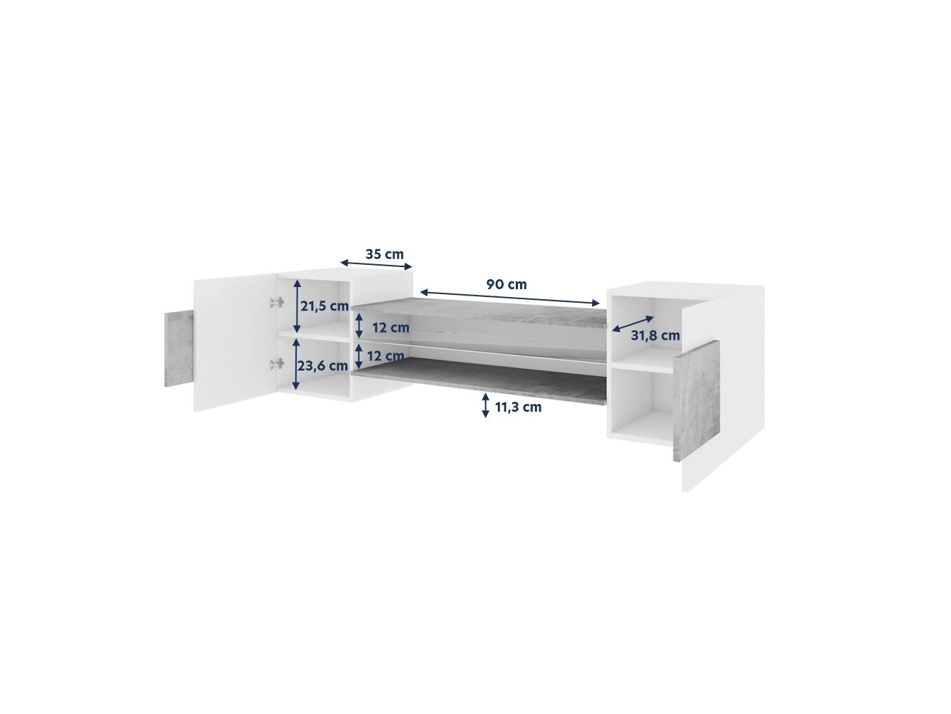 Ste milovníkom jednoduchých foriem a hľadáte dokonalý kus nábytku do vášho TV kútika? Televízna skrinka to zvládne! je skvelý dizajn s moderným nádychom. Skvele zapadne do interiérov v štýle loft alebo minimalistických aranžmánov. Konštrukcia je vyrobená z odolnej laminovanej dosky egger a je dostupná v niekoľkých očarujúcich farebných variantoch. Vzhľad však nie je všetko – je plne funkčný TV stojan. Polica dobre poslúži ako miesto pre dekodér alebo konzolu. Dodatočné diaľkové ovládače, podložky a príslušenstvo, ktoré sa oplatí mať po ruke, no nie na očiach, možno úspešne skryť za uzavreté čelá. Skrinka má voliteľné LED osvetlenie, ktoré dokonale zvýrazní sklenenú policu a navodí do interiéru príjemnú a atmosférickú atmosféru. Celé je to umiestnené na plastových nožičkách, tzv 5 mm vysoké klzáky, ktoré izolujú skrinku od podlahy a poskytujú ochranu doske. Ochrana hrán vo forme PVC pásika s hrúbkou 0,5 mm zároveň chráni nábytok pred škodlivými faktormi. Doplňujúce informácie: výška vybrania v základni nábytku: 12,1 cm, výška spodnej police: 11 cm, šírka vybrania v doske stola: 90 cm. Pozvite a do svojej obývačky!