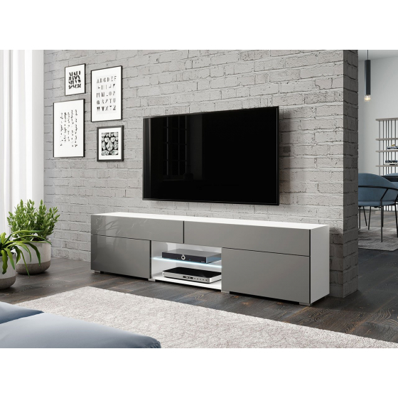 TV skrinka/stolík Mrentu (biela + lesk šedý) (LED osvetlenie biele) *výpredaj