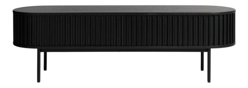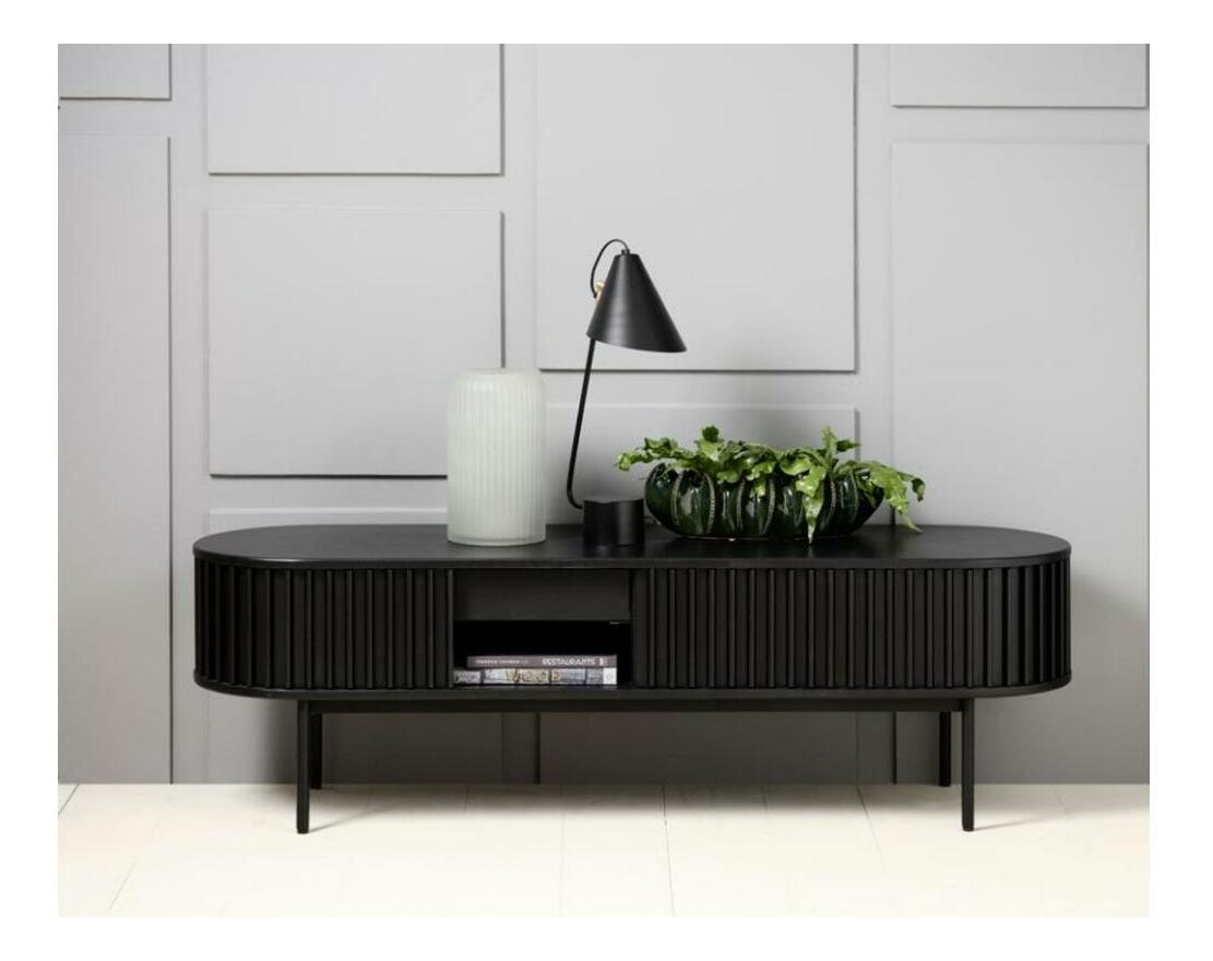 ZobraziťSnívate o vkusne riešenom priestore, kde budete môcť relaxovať alebo tráviť čas so svojimi blízkymi? Funkčná a zároveň mimoriadne štýlová kolekcia nábytku je dokonalým návrhom na vytvorenie nového aranžmánu! TV skrinka do obývačky je dokonalým riešením pre ľudí, ktorí chcú mať svoje elektronické vybavenie v poriadku. Tento dizajnový kus nábytku sa pýši dvojicou priestranných dvierok, ktoré sa zaujímavým spôsobom otvárajú do strán, predstavujú zásuvku a dva výklenky. Môžete si tu jednoducho usporiadať svoje drobnosti – dokumenty, kancelárske doplnky, elektronické prístroje alebo diaľkové ovládače – veci môžete usporiadať na jednom mieste a získať tak úhľadný a usporiadaný interiér. Skrinka je vyrobená z dubového dreva lakovaného na čierno. Táto kompozícia poteší výrazným dizajnom, no vzbudzuje uznanie aj svojou trvácnosťou a odolnosťou voči mechanickému poškodeniu. Štýlové lamely na prednej strane nábytku sú vkusným doplnkom. Detaily produktu: TV skrinka z dubového dreva, prírodný materiál s vysokou životnosťou, odolnosťou proti poškodeniu a krásnym vzhľadom, povrch pokrytý ozdobnými drážkami, drážky sú pozdĺžne, úzke drážky malej šírky a hĺbky, ktoré prebiehajú paralelne, nohy vyrobené lakovaného z čierneho kovu, sú odolné proti hrdzaveniu a zároveň zaisťujú vysokú stabilitu celej konštrukcie, posuvné dvere, farba: dub čierny.
