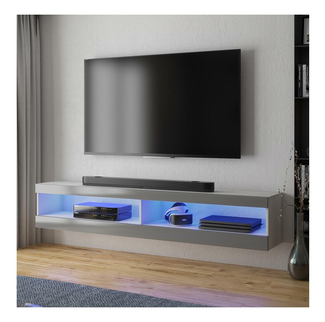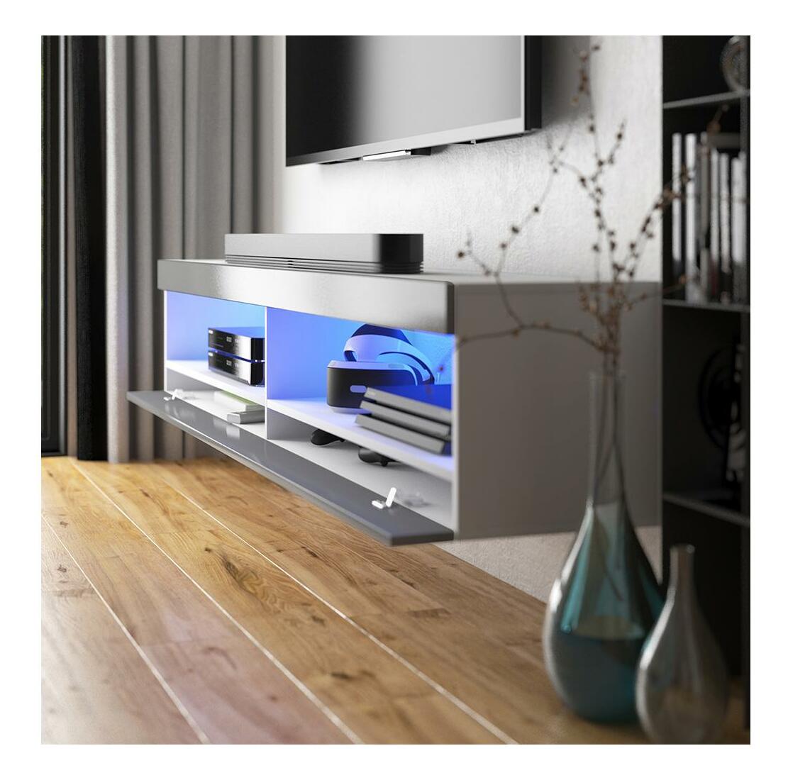 TV skrinka/stolík Violett 140 (s osvetlením) (biela + sivá)