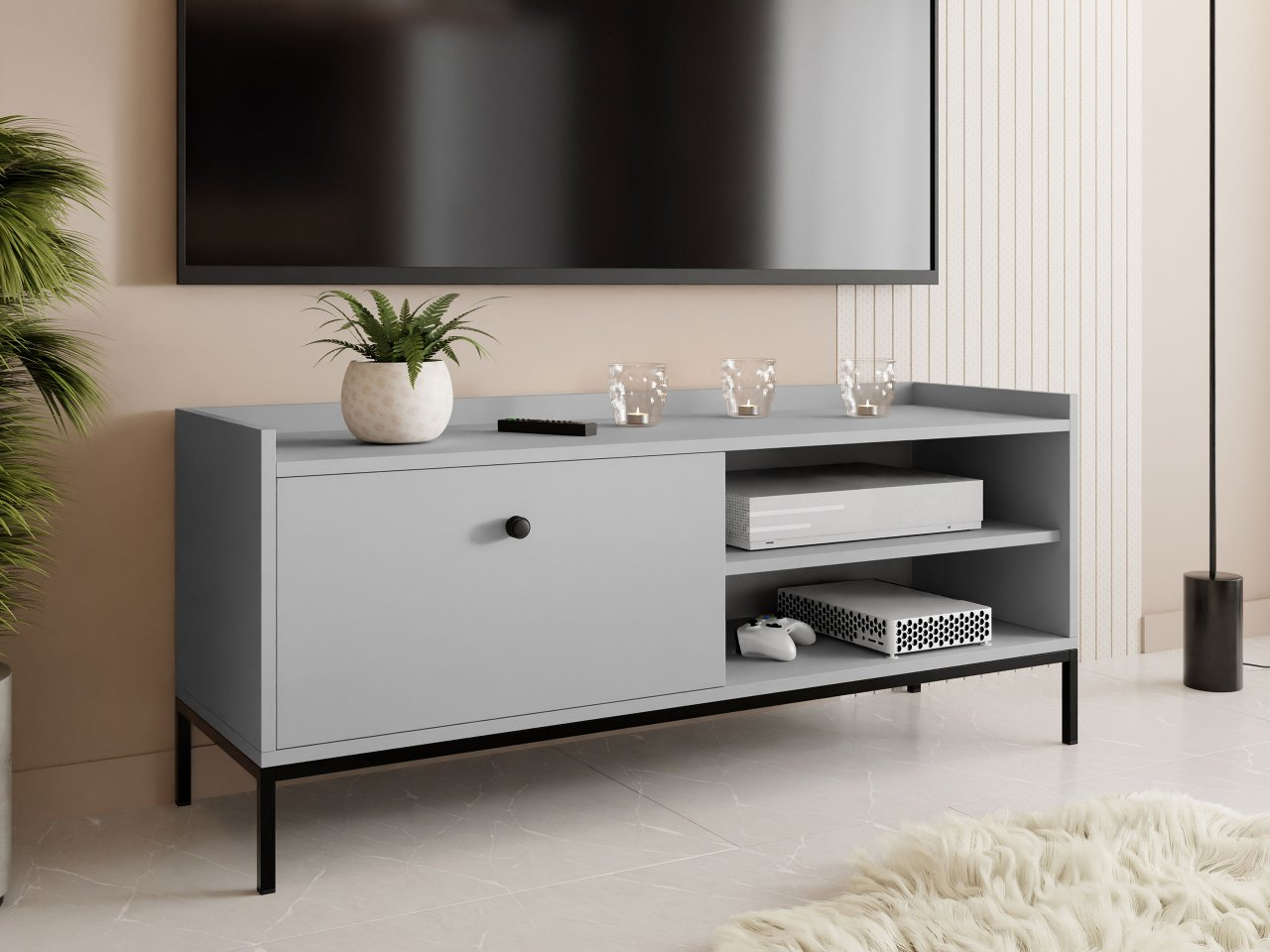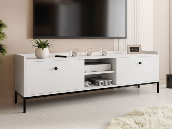 Takmer každý dom alebo byt má televízny kútik. TV skrinka Tezarta 2K je pre takéto miesto ideálna. Poskytuje priestor pre vaše audiovizuálne zariadenia a uzavreté police skryjú veci, ktoré by nemali byť na očiach. TV skrinka je tiež ideálnym priestorom na drobné dekorácie. Konštrukcia tohto modelu je založená na kovovom ráme. Vďaka takémuto nastaveniu získava kus nábytku aj prostredie, v ktorom je umiestnený, jemnú ľahkosť.