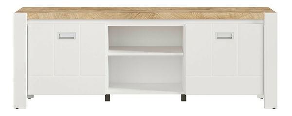 Vzhľadný TV stolík poskytujúci priestor na audio/video techniku, a tiež úložný priestor v dvoch skrinkách.