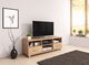 Tento jednoduchý, moderný TV stolík bude spestrením vašej obývačky. Je to TV stolík, ktorý je ideálný aj do menších interiérov. Získať ho môžete vo farbe javor alebo javor-amari. Úchyty a nožičky sú zase v príjemnom zlatom prevedení. Nájdete v ňom dostatok úložného priestoru na vaše audio/video prehrávače alebo nosiče.