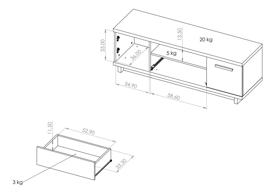 ZobraziťTv stolík Indi RTV je ideálny pre tých, ktorí hľadajú moderný a funkčný nábytok do svojej obývačky. Stolík je vyrobený z kvalitnej drevotrieskovej dosky, ktorá zaručuje dlhú životnosť a odolnosť. Stolík má výšku 46 cm a hĺbku 40 cm, vďaka čomu sa dokonale hodí pre menšie priestory. Kombinácia Dub Artisan a Čiernej matnej farby dáva stolíku moderný a elegantný vzhľad. Stolík má 2 dvere a 1 zásuvku s maximálnou zaťažiteľnosťou až 3 kg. Hornej časti je možné zaťažiť až 20 kg a polička zvládne zaťaženie do 5 kg. Celkové maximálne zaťaženie Tv stolíka je 30 kg. Úchytky sú plastové a čierne matné a lišty sú vodiace. Tv stolík Indi RTV je výbornou voľbou pre tých, ktorí hľadajú kvalitný a moderný nábytok do svojho interiéru. Rozmery v balení sú 148x49,5x9 cm/25,5 kg a 77x42x12 cm/15 kg.