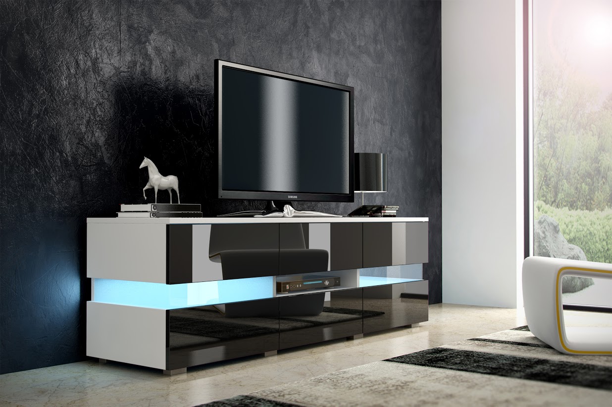 TV stolík Inter sa hodí najmä do moderných obývacích izieb. Jeho eleganciu podčiarkuje čistý dizajn, prostredná presklená časť a lesklý front. Uprostred stolíka sa nachádza priestor, kde si môžete umiestniť vaše AV zariadenia. Dvierka stolíka nemajú úchyty a otvárajú sa systémom Click. Farebné prevedenie stolíka je biela farba v kombinácii s čiernym
