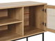 Televízne stolíky nemusia byť iba jednoduché a jednotvárne. Tento TV stolík z prírodného ratanu vo vašej obývačke nádherne vynikne a dodá jej dávku boho štýlu. Stolík poskytuje dostatok úložného priestoru v podobe dvoch skriniek a dvoch políc a taktiež disponuje priestrannou vrchnou doskou, na ktorú môžete vystaviť televízor alebo obľúbené dekoratívne predmety. Čierne kovové nohy vytvárajú krásny farebný kontrast a skrinke poskytujú stabilitu a dlhú životnosť.