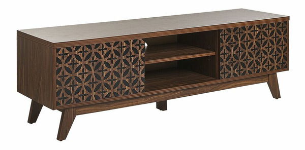 Tento krásny TV stolík je vyrobený z laminovanej drevotrieskovej dosky, ktorá sa ľahko udržiava. Stolík s ozdobnými dvierkami je navrhnutý tak, aby vydržal mnoho rokov a dodal vašej obývačke nadčasovú eleganciu. Vďaka dvom policiam a skrinkám ponúka dostatok priestoru na uloženie všetkých potrebných predmetov a dekorácií. Ochranné kryty na pevných nohách zaručujú dlhodobú a spoľahlivú ochranu vašej podlahy. Okrem toho má stolík v zadnej časti otvor na káble, ktorý umožní jednoducho pripojiť elektronické zariadenia.