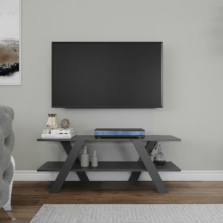 TV stolík/skrinka Aprilia (antracit) je skvelým doplnkom do vášho interiéru. S výškou 45 cm, šírkou 120 cm a hĺbkou 33.1 cm, poskytuje dostatok miesta pre váš televízor a ďalšie zariadenia. Vyrobený z kvalitnej 100% melamínovej dosky, tento stolík/skrinka je odolný a ľahko sa udržiava. Jeho antracitový odtieň dodáva elegantný a moderný vzhľad do vášho domova. S praktickými úložnými priestormi vám poskytuje dostatok miesta na uskladnenie rôznych vecí. TV stolík/skrinka Aprilia (antracit) je ideálnym riešením pre tých, ktorí hľadajú štýlový a funkčný nábytok pre svoju obývačku.