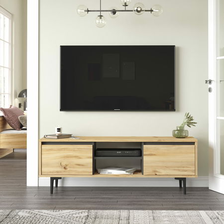 TV stolík/skrinka - Ariel 1 (Prírodná + Antracit) je elegantný a praktický nábytok pre váš televízor a multimediálnu zostavu. S výškou 48 cm, šírkou 140 cm a hĺbkou 35 cm je dostatočne veľký na umiestnenie väčšiny televízorov a zároveň kompaktný, aby sa zmestil do každej miestnosti. Výrobok je vyrobený z kvalitného materiálu, ktorý je odolný a ľahko sa čistí. Prírodná a antracitová farba dodáva stolíku moderný a štýlový vzhľad, ktorý sa hodí do akéhokoľvek interiéru. TV stolík/skrinka - Ariel 1 je ideálnym riešením pre usporiadanie vášho televízneho priestoru a pridaním elegantného prvku do vášho domova. Kvalita, štýl a praktickosť sa spojili v tomto jedinečnom nábytkovom kúsku.