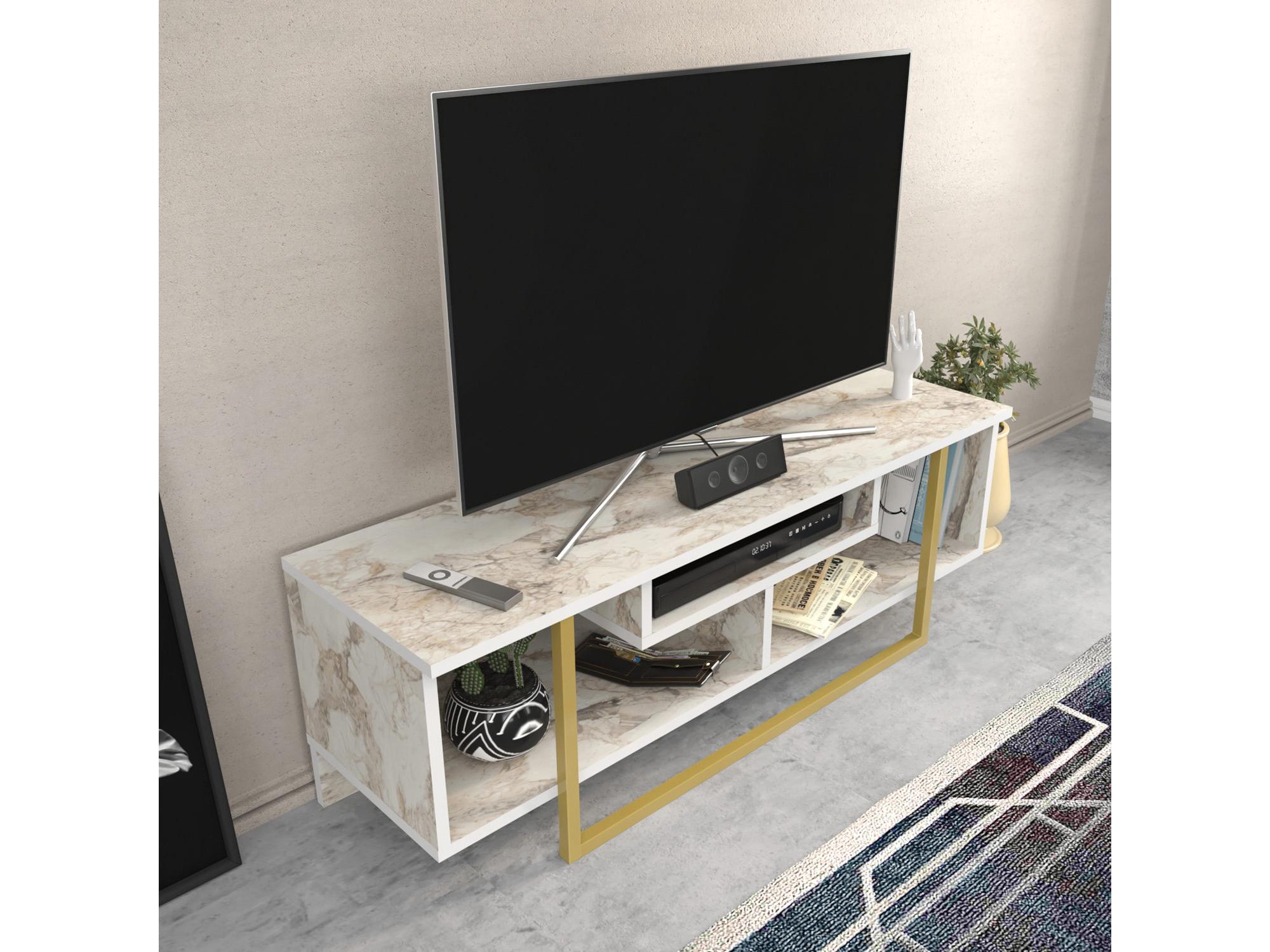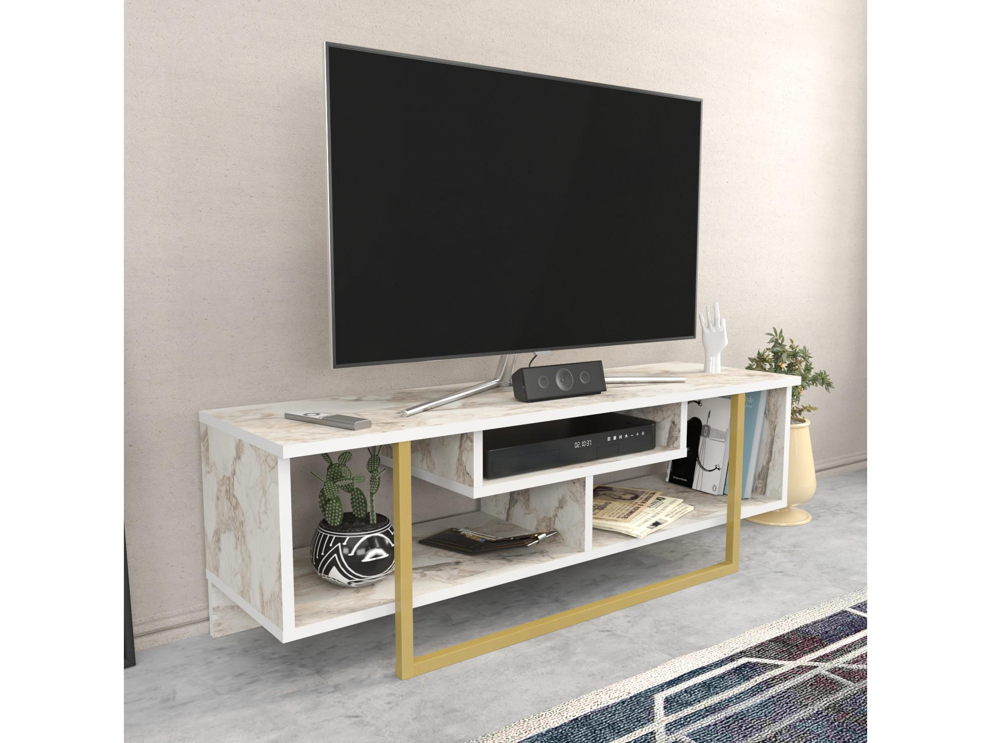 TV stolík/skrinka Aslana 120 (biela + zlatá)