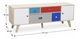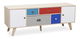 Unikátny TV stolík,ktorý kombinuje retro štýl s modernými prvkami. Má štyri zásuvky a dvoje dvierok. Každá zásuvka má inú veľkosť, farbu a typ úchytu. Hodí sa do pestro zariadených moderných domácností.
