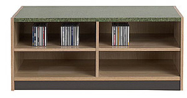 Otvorený TV stolík rozdelený na štyri symetrické časti. Nábytok z modelovej rady Lendi, novinka na rok 2010 od výrobcu Black Red White.