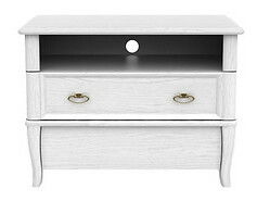 Praktický TV stolík obsahuje 1 otvorenú policu a 2 zásuvky. Zásuvky sú na kvalitných kovaniach (skrytý, čiastočný plnovýsuv). Na zadnej stene v otvorenej polici je praktický otvory pre káble.