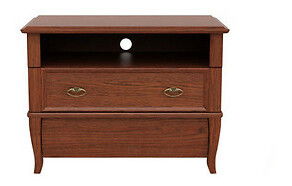 Praktický TV stolík obsahuje 1 otvorenú policu a 2 zásuvky. Zásuvky sú na kvalitných kovaniach (skrytý, čiastočný plnovýsuv). Na zadnej stene v otvorenej polici je praktický otvory pre káble.