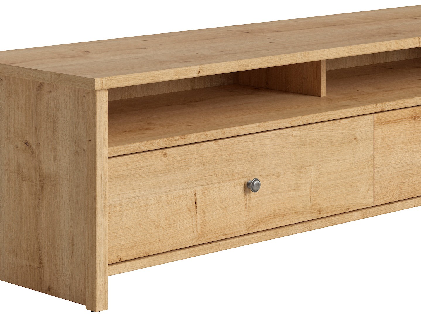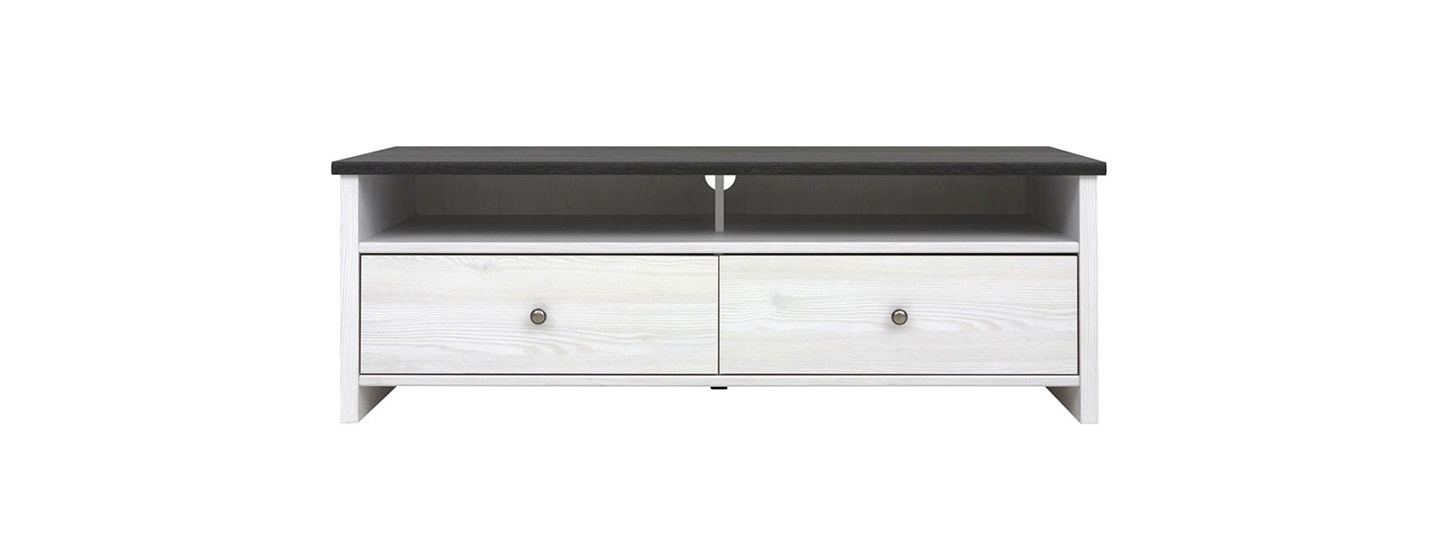 Štýlový TV stolík pod televízor, ktorý dizajnovo vychádza z obľúbeného francúzskeho štýlu. TV stolík má otvorenú poličku určenú na vaše AV zariadenia. Je rozdelená priečkou na dve časti. V spodnej časti sa nachádzajú dve zásuvky. Do nich si viete odložiť zbierku DVD filmov, knihy alebo iné drobnosti.