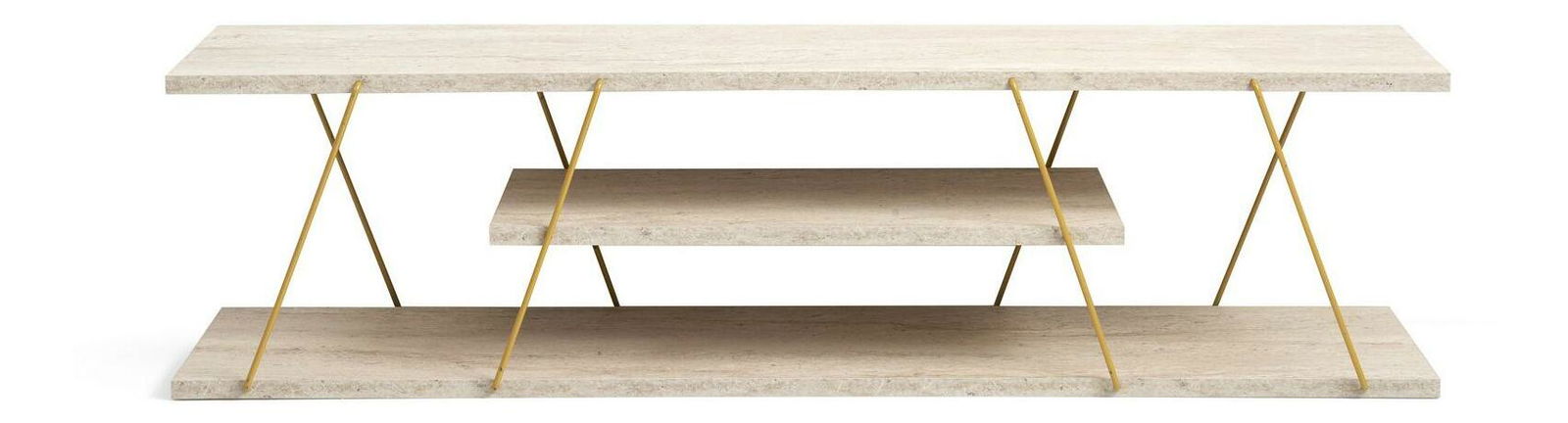 TV stolík/skrinka Cana (zlatá + mramor svetlý)
