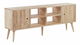 Tento minimalistický a funkčný TV stolík vnesie do každého interiéru moderný nádych. Je vyrobený z kaučukového dreva a má prirodzený zrnitý vzor uzlov. Vďaka rôznym druhom úložného priestoru doň môžete uložiť všetko, čo potrebujete. Stolík má dve skrinky a 4 otvorené police, ktoré sú ideálnym miestom pre všetky mediálne zariadenia, ktoré vyžadujú zapojenie. Vďaka univerzálnemu dizajnu sa skvele hodí do obývačky, spálne či predsiene.