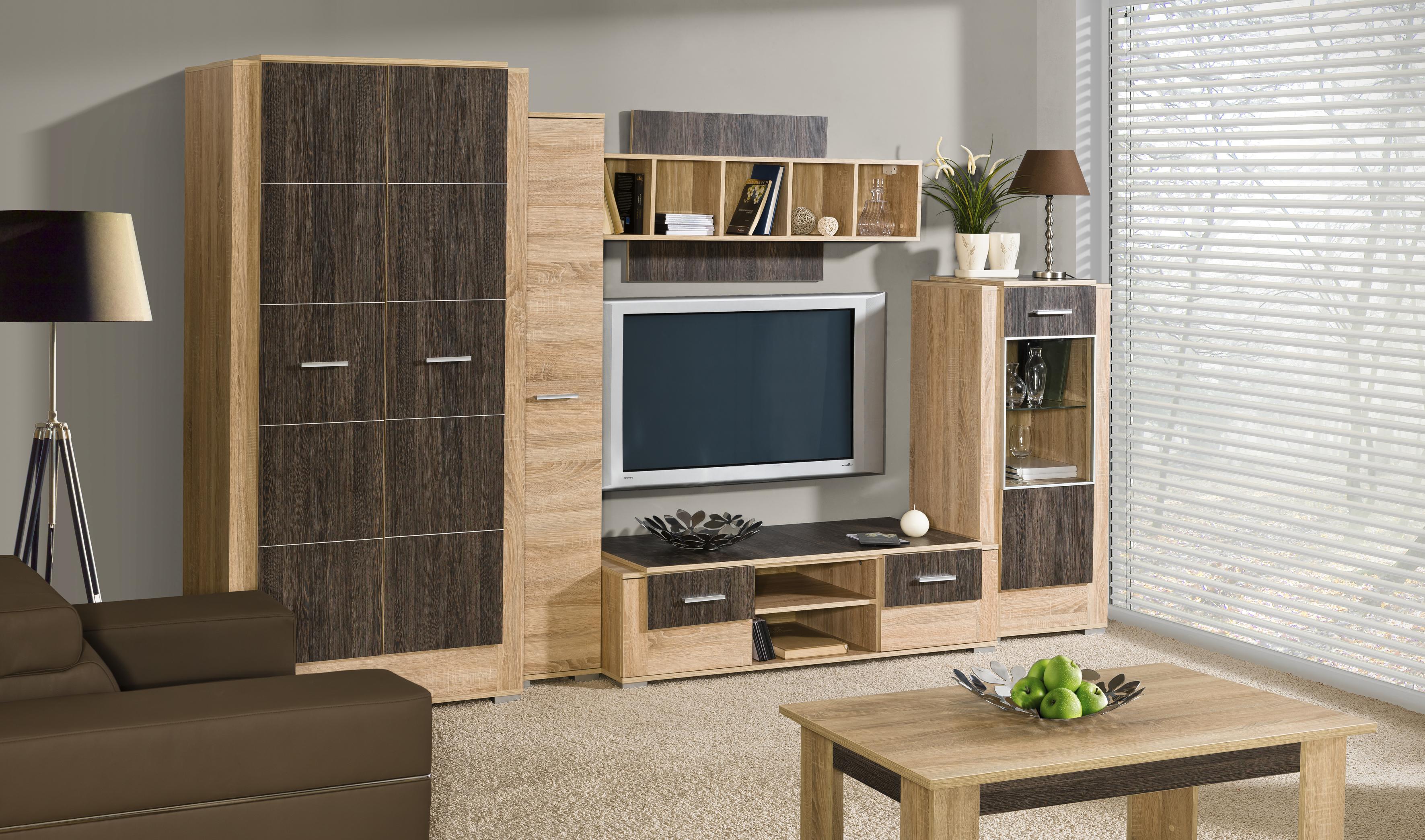 Moderný sektorový nábytok Claverdon vyniká štýlovým dizajnom, ktorému dominujú ozdobné segmenty frontov, masívne nožičky a široké úchyty. Je všestranný aj čo sa týka zariadenia akejkoľvek miestnosti v domácnosti. Či už potrebujete šatníkovú skriňu na oblečenie, komodu na doplnky, priestranný jedálenský stôl, praktický TV stolík alebo PC stolík - to všetko Vám ponúkne modelový rad Claverdon.