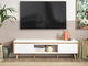 Vďaka tomuto TV stolíku s dostatočným úložným priestorom bude vaša obývačka stále uprataná. Dve priestranné zásuvky pojmú všetky náhradné káble, dokumenty a iné dôležité veci, ktoré potrebujete mať vždy poruke. Polica, s otvorom v zadnej časti na zavedenie káblov, je ideálnym miestom na umiestnenie elektronického zariadenia. Tento kúsok sa vďaka svojmu klasickému dizajnu a neutrálnym farbám hodí najmä do tradičných alebo škandinávsky ladených interiérov. Elegantný vzhľad je zvýraznený nohami z masívneho dreva, ktoré zaručujú extra stabilitu.