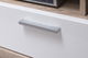 Obývačkový nábytok s jemnými farbami dreva dub pílený bardolino a bielou vo vysokom lesku, pôsobí ukľudňujúco a navodí príjemnú atmosféru v izbe. Predné dvierka sú vyrobené z kvalitnej MDF a vitríny doplnené o číre bezpečnostné sklo.