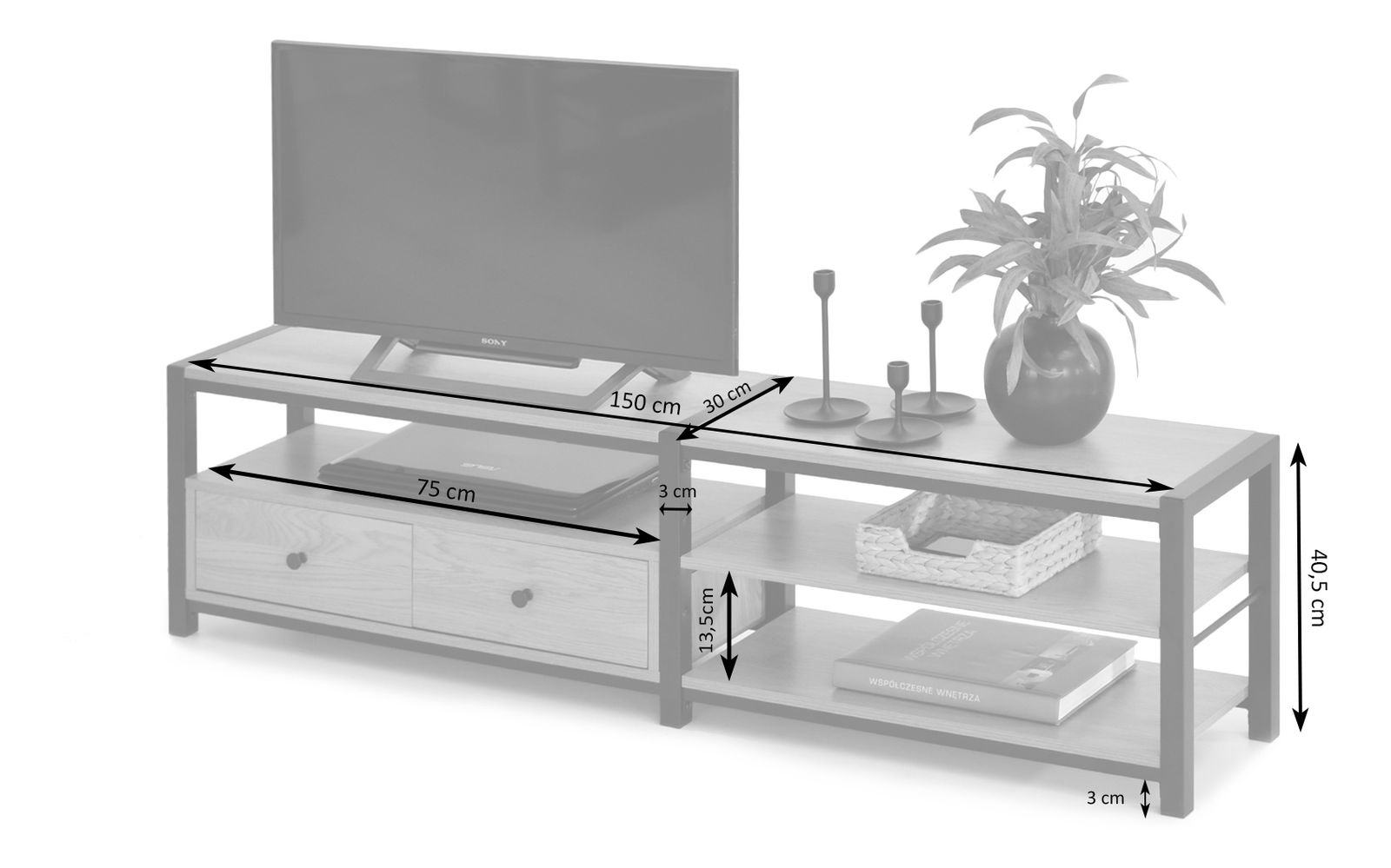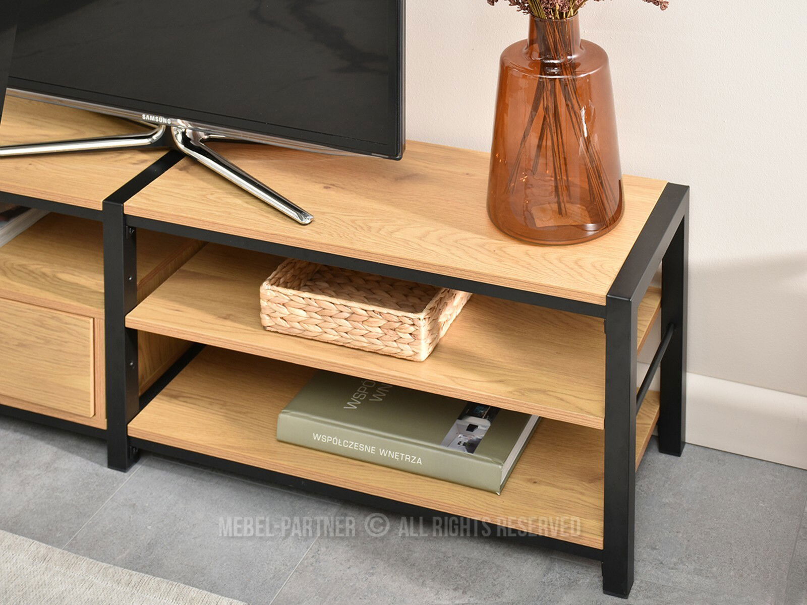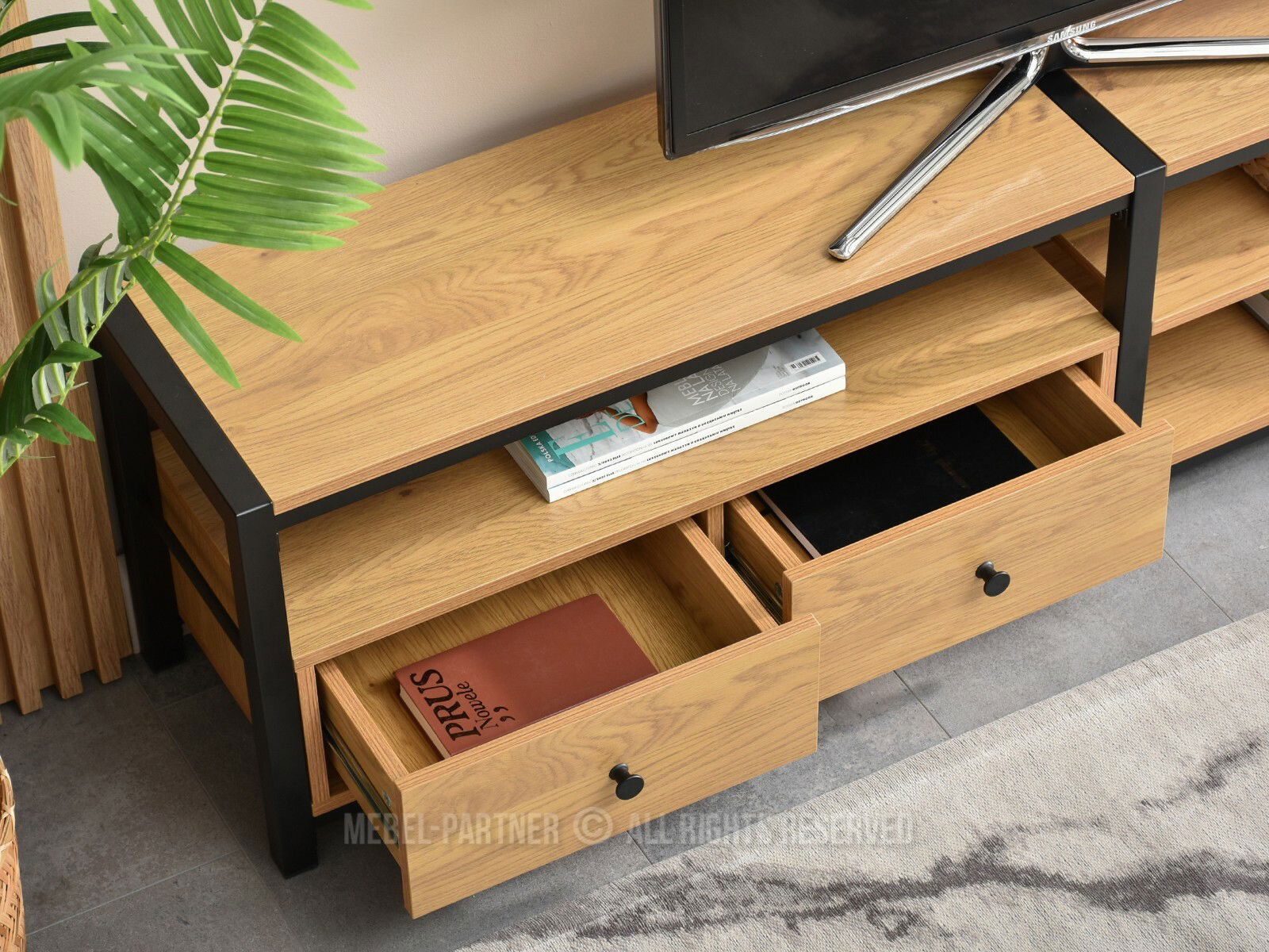 Vďaka kvalitnému materiálu a pevnej konštrukcii je vhodný ako moderný TV stolík aj ako moderná skrinka do obývačky.
