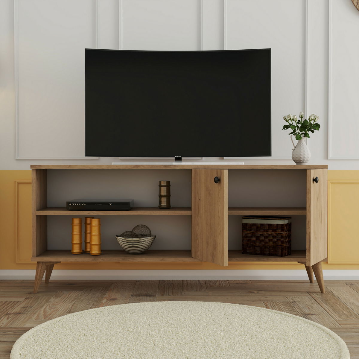 TV stolík/skrinka - Každé 2 výška 60 cm šírka 138 cm Dub hĺbka 29,5 cm Materiál: 100% melamínová doska. Tento TV stolík/skrinka je ideálnym doplnkom pre váš obývací priestor. Vysoká kvalita materiálu zabezpečuje dlhú životnosť a odolnosť. S jeho rozmernými rozmermi a dostatkom úložného priestoru vám poskytuje miesto na usporiadanie televízie, DVD prehrávača, herných konzol a ďalších zariadení. Jeho elegantný design a dubový povrch pridávajú do vášho domova štýlový vzhľad. Bezproblémová montáž a ľahká údržba robia z tohto TV stolíka/skrinky praktický a funkčný nábytok pre každého zákazníka.