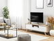 TV stolík/skrinka Flamor (biela) je moderný nábytok, ktorý vyniká svojou jednoduchosťou a eleganciou. Vysoká kvalita a precízne spracovanie zaručujú, že tento nábytok bude dlhodobo spĺňať všetky Vaše nároky. Výška 56 cm, šírka 147 cm a hĺbka 42 cm sú ideálne rozmery pre pohodlnú a praktickú polohu televízora. V skrinke je dostatok úložného miesta na rôzne zariadenia, napríklad pre DVD prehrávač alebo hernú konzolu. Biela farba dodáva stolíku elegantný a moderný vzhľad, ktorý sa hodí do akéhokoľvek interiéru. TV stolík/skrinka Flamor (biela) je dokonalý doplnok do Vášho obývacieho priestoru a bude slúžiť ako praktický a štýlový základ Vášho televízneho rohu.
