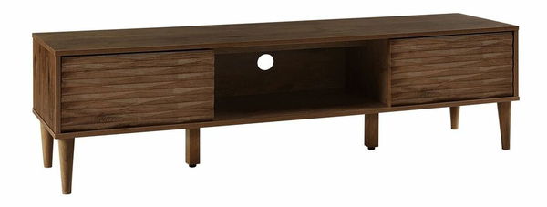 Tento krásny TV stolík dodá akejkoľvek obývacej izbe štýlovú retro atmosféru a bude sa hodiť do interiérov v tradičnom, modernom alebo súčasnom štýle. Kombinácia kvalitného MDF materiálu, použitého v prednej časti skrinky, a nôh vyrobených z masívneho dreva zaručuje odolnosť a dlhú životnosť. Stolík má širokú vrchnú dosku a praktické skrinky, ktoré ponúkajú dostatok úložného priestoru na všetky potrebné predmety a doplnky. Skrinka má v zadnej časti praktické otvory, vďaka ktorým jednoducho pripojíte všetky elektronické zariadenia. Tento kúsok je nielen užitočný ale taktiež elegantný doplnok, ktorý sa hodí do akéhokoľvek minimalistického či škandinávskeho štýlu interiéru.