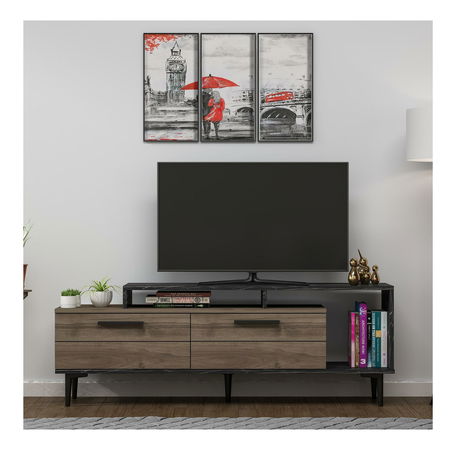 TV stolík/skrinka Kiniva (orech + čierna + mramor)
