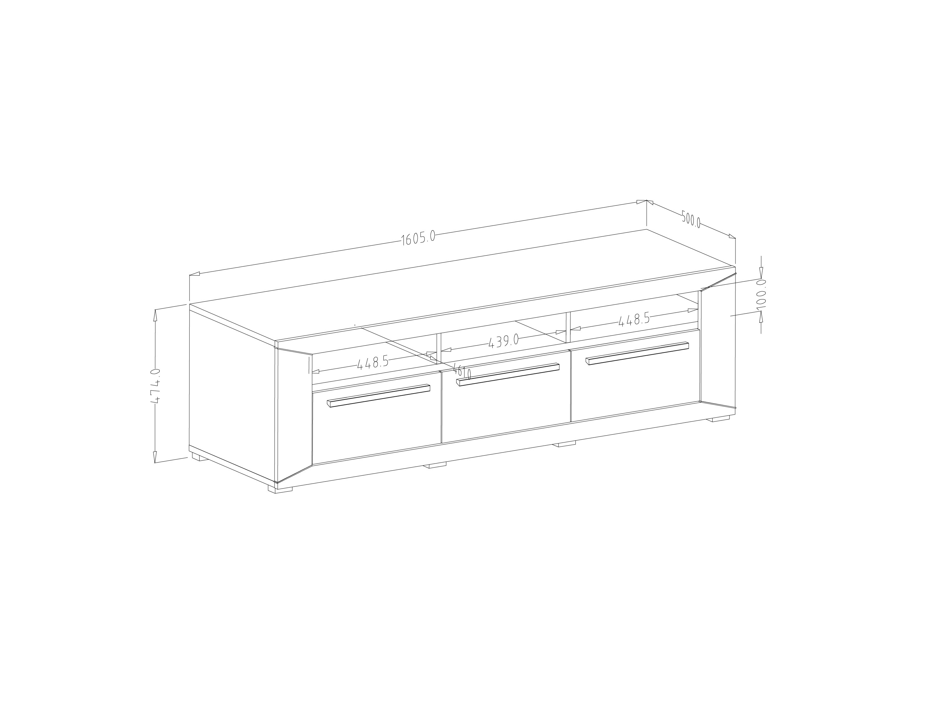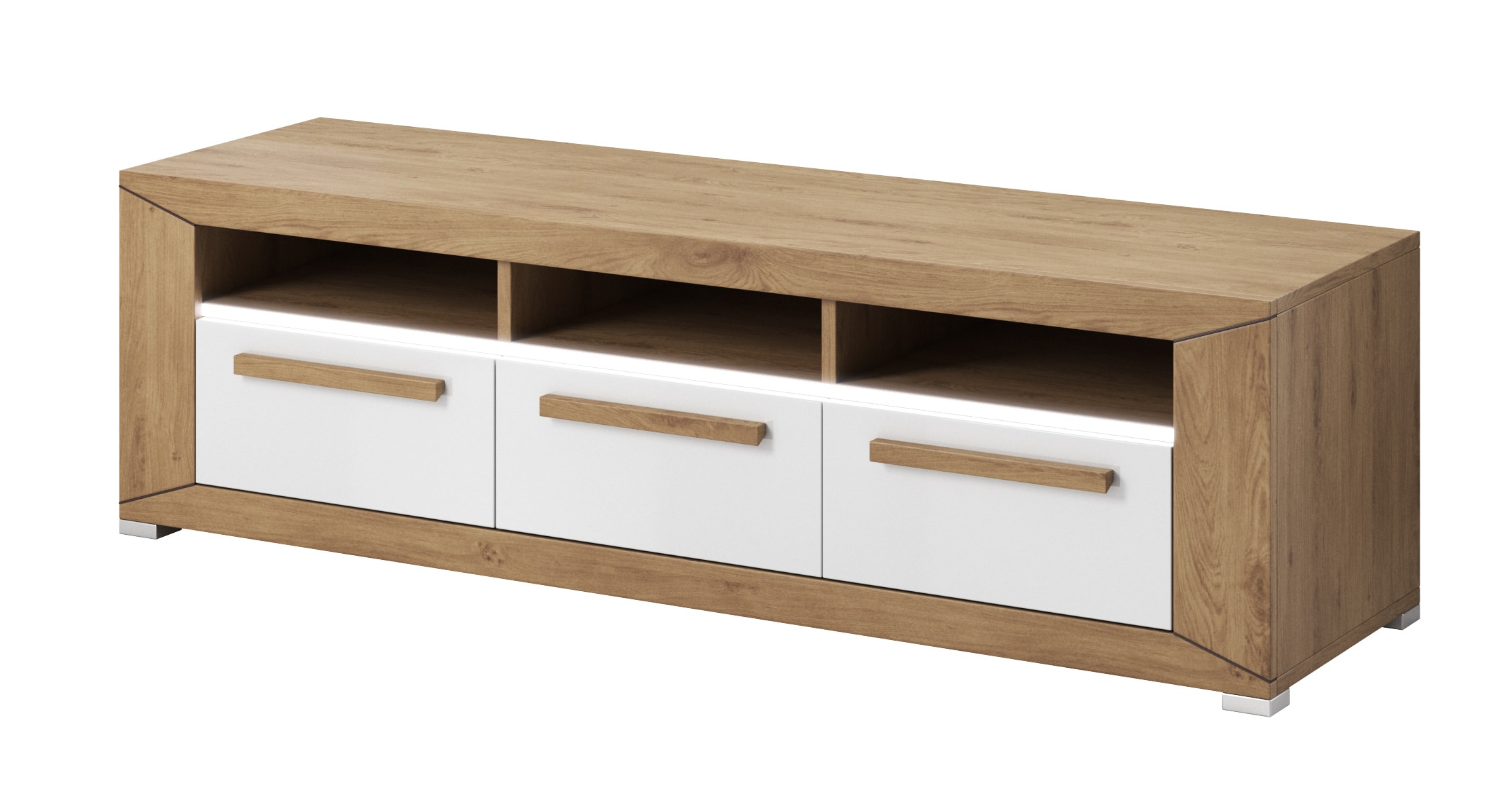 Ponúkame vám modernú sériu LAURIE v príjemných teplých farbách. TV stolík je zabezpečený ABS hranami v šírke 0,5 mm. Úchyty sú v rovnakom prevedení ako je korpus. Korpus dosky je v hrúbke 15 mm, front MDF má hrúbku 18 mm. Kvalitný materiál HDF za príjemnú cenu.Tri zásuvky zabezpečujú dostatok úložného priestoru. Otvorené police výborne slúžia na uloženie boxu.