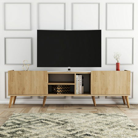TV stolík/skrinka - Lotos (Dub) je ideálnym doplnkom pre váš obývací priestor. S výškou 52 cm, šírkou 180 cm a hĺbkou 34 cm poskytuje dostatok miesta pre vašu televíziu a ďalšie zariadenia. Jeho elegantný dubový dizajn pridáva štýlový dotyk do vášho interiéru. Skrinka disponuje dostatočným úložným priestorom, takže môžete udržiavať poriadok a skryť káble a ďalšie veci. S TV stolíkom Lotos si užijete pohodlie sledovania vášho obľúbeného obsahu s jednoduchosťou a štýlom.