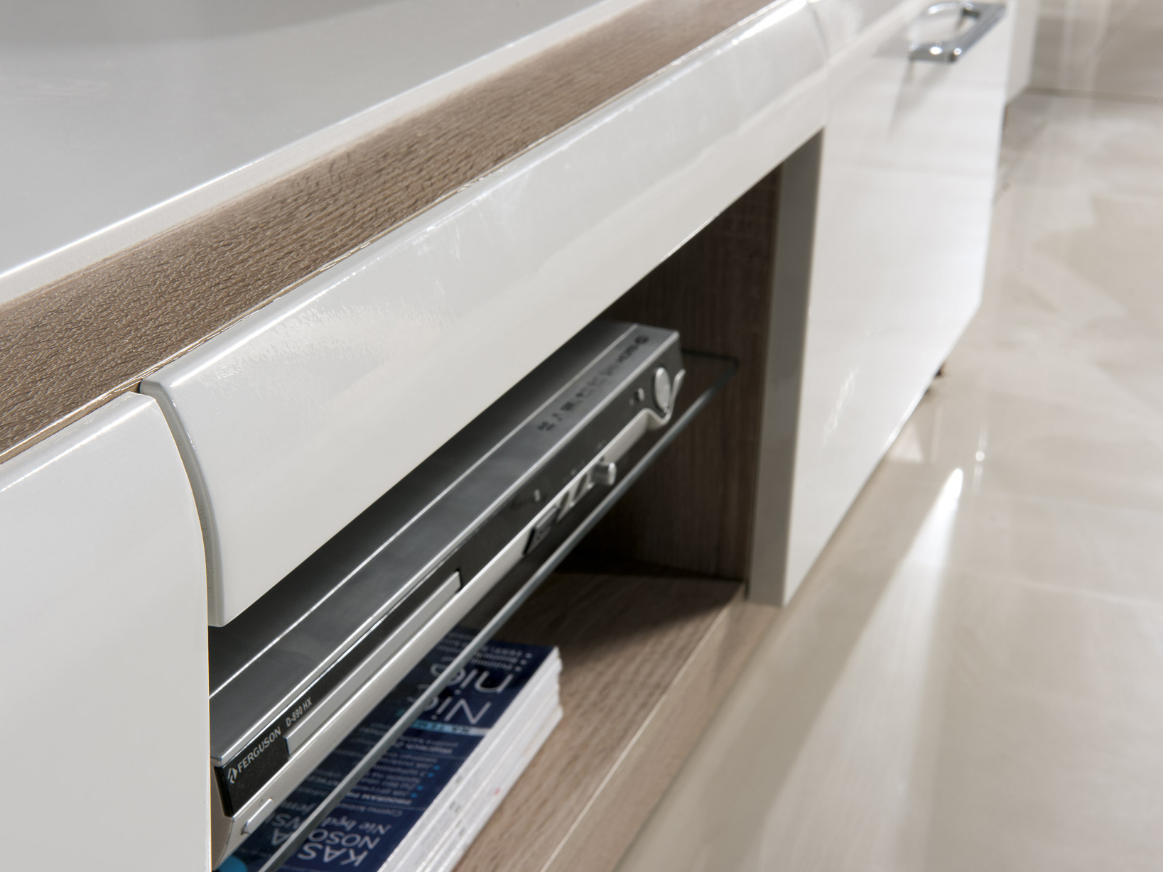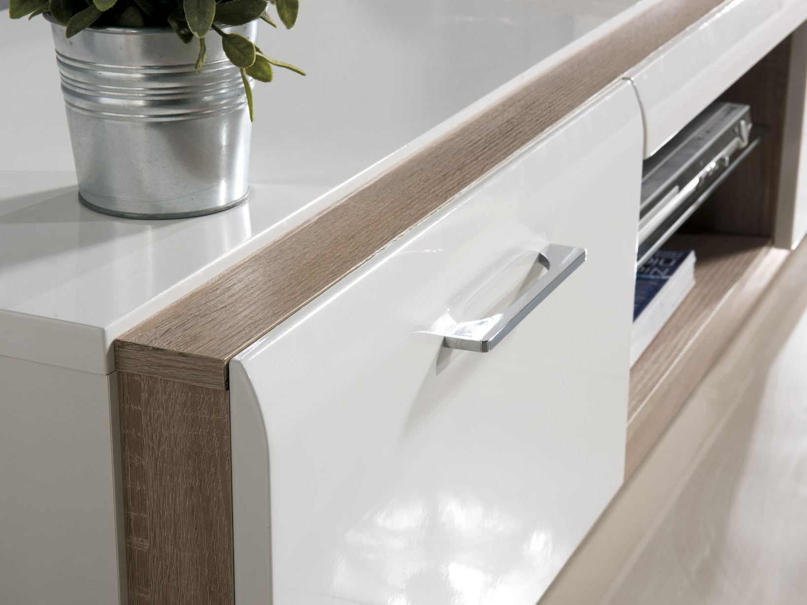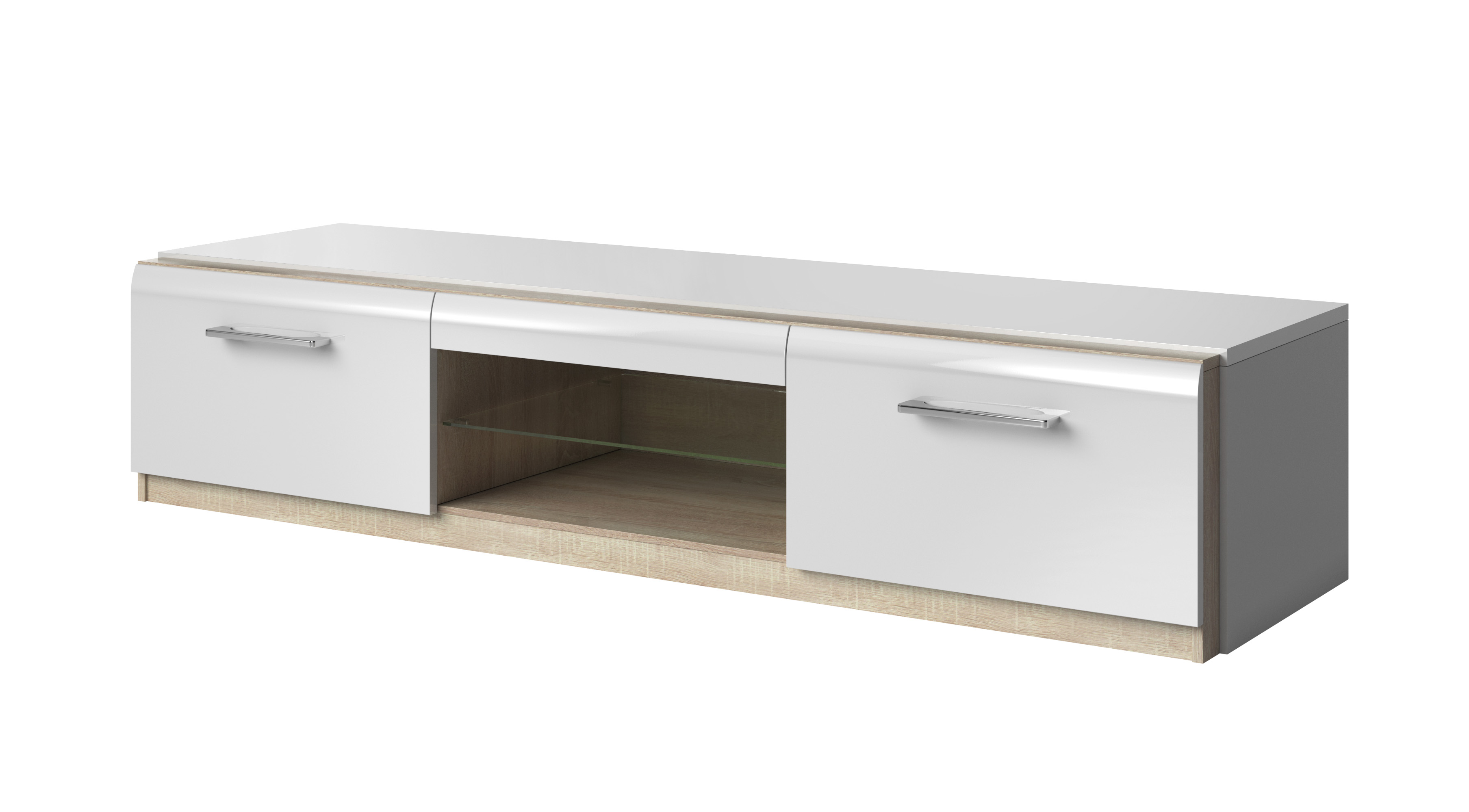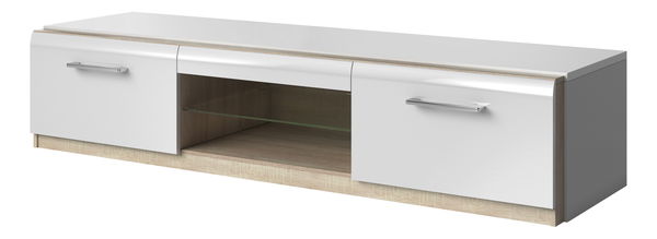 TV stolík/skrinka Melia Typ 40 (biela + dub sonoma svetlá + biely vysoký lesk)