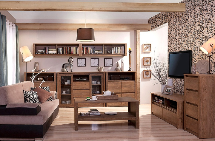 Nábytok je vyrábaný z kvalitnej laminovanej DTD v odtieni hnedkastého dubu lefkas. Svoju eleganciu naplno prejaví primárne vo svetlých a väčších priestoroch. Určite sa bude dobre vynímať v obývacej izbe, ale môžete si ním zariadiť reprezentatívnu pracovňu, predsieň. Celý sektor Monte je vybavený ABS hranami, výrazná štrukrúra lamina vytvára niečo podobné 3D efektu.
