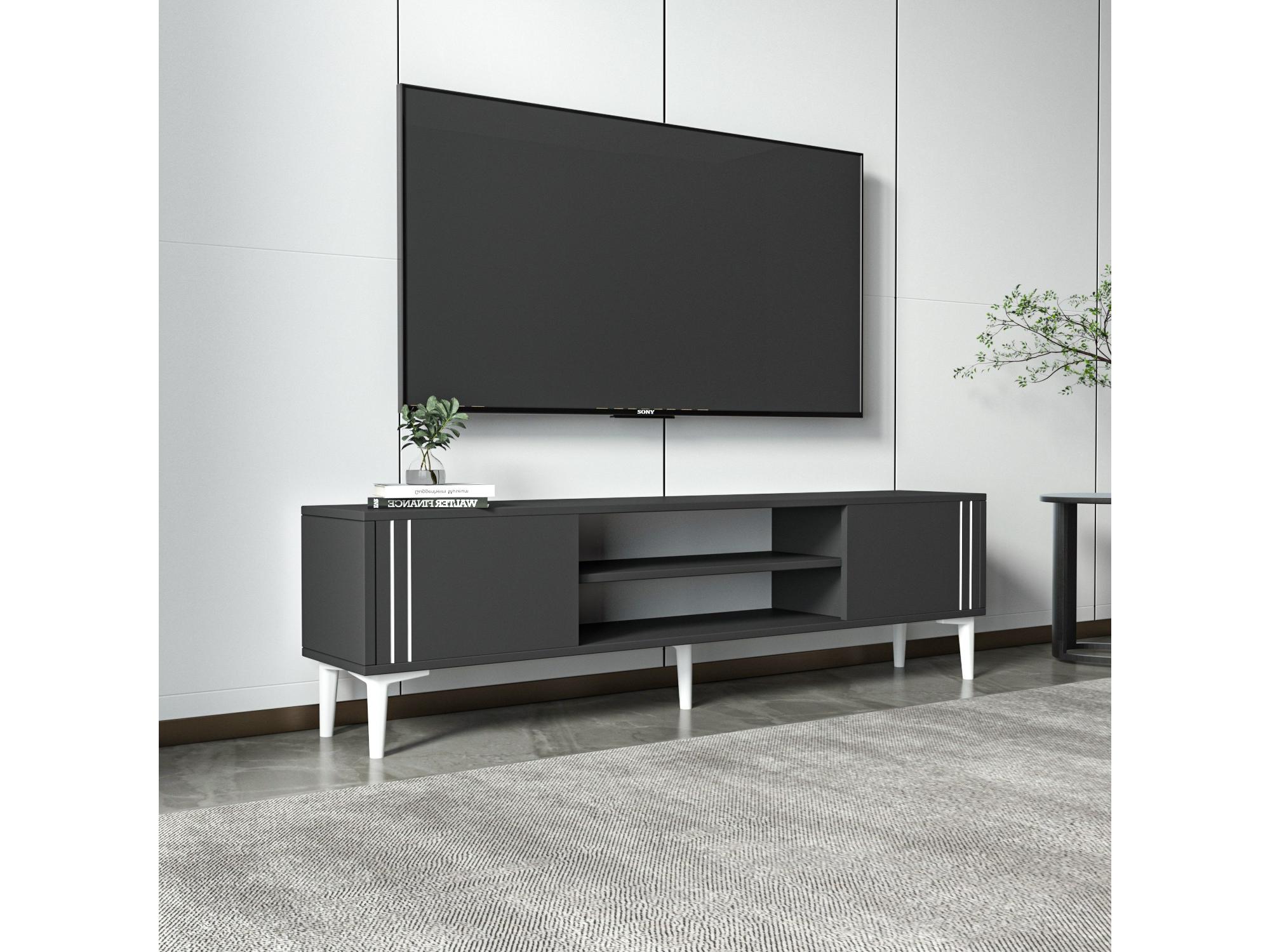 TV stolík/skrinka - Neola (antracit) je ideálnym doplnkom pre váš obývací priestor. S výškou 35 cm, šírkou 160 cm a hĺbkou 32 cm je dostatočne veľký na umiestnenie vášho televízora a ďalších zariadení. Vyrobený z vysoko kvalitnej 100% melamínovej dosky, tento TV stolík/skrinka je odolný a ľahko sa udržiava. Jeho elegantný antracitový odtieň pridáva moderný dotyk do vášho interiéru. S dostatkom úložného priestoru v podobe políc a skriniek, môžete udržať vašu televíznu zostavu a ďalšie veci v poriadku. TV stolík/skrinka - Neola (antracit) kombinuje praktickosť, štýl a kvalitu pre dokonalý zážitok z vášho televízneho priestoru.