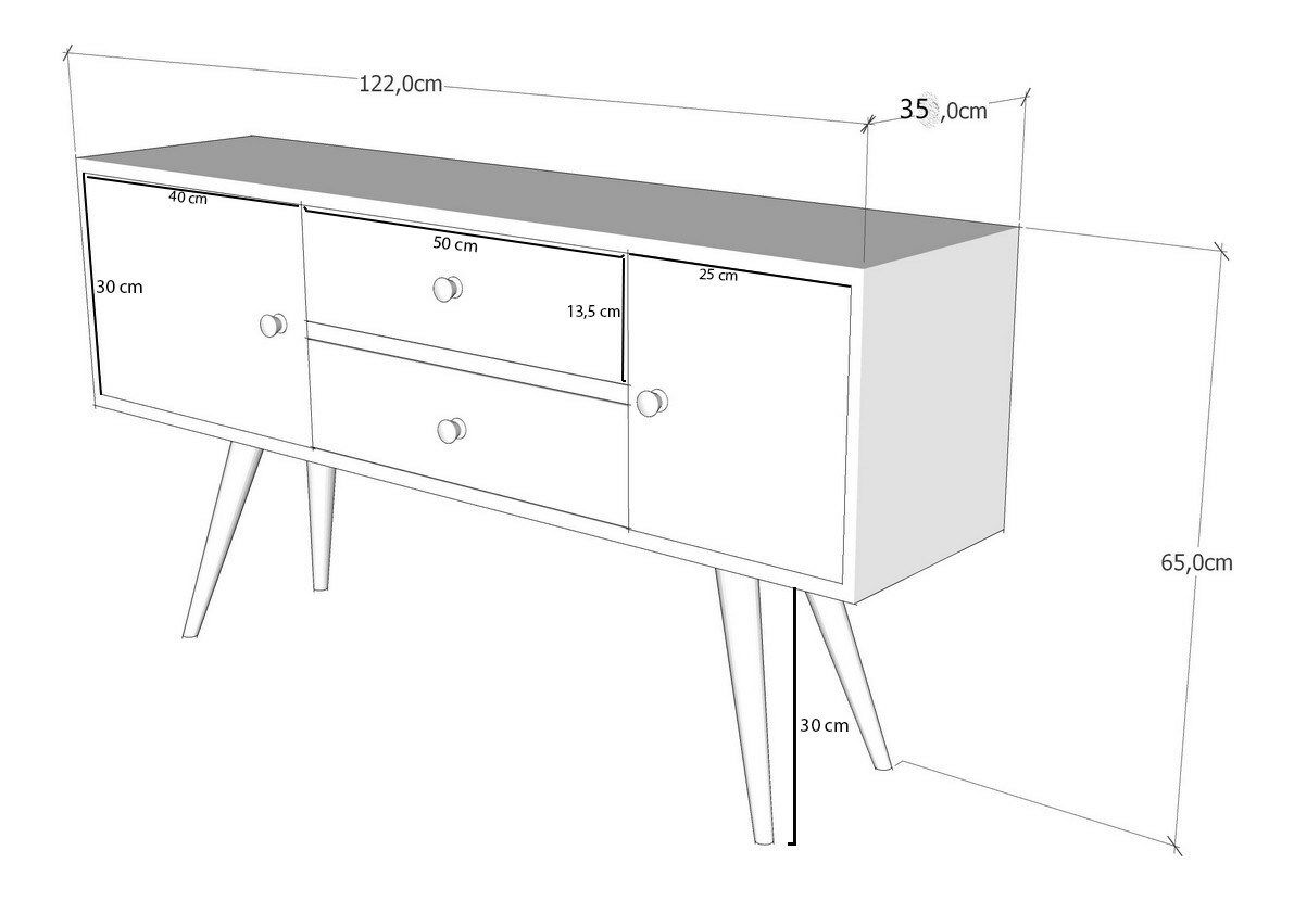 TV stolík/skrinka - Odin je ideálny nábytok pre váš televízor a multimediálnu zostavu. S výškou 65 cm, šírkou 122 cm a hĺbkou 35 cm, tento bielo-orechový stolík poskytuje dostatok priestoru na umiestnenie vášho televízora a ďalších zariadení. Biela farba v kombinácii s orehovými detailmi dáva stolíku moderný a elegantný vzhľad, ktorý sa hodí do akéhokoľvek interiéru. S praktickými úložnými priestormi je tento stolík skrinkou skvelým riešením pre organizáciu vašej audiovizuálnej techniky. Prezentujte svoju televíziu štýlovo a prakticky s TV stolíkom/skrinkou Odin.