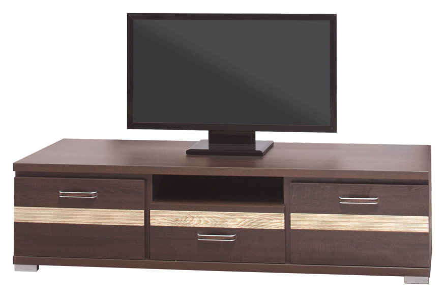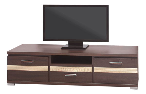 TV stolík/skrinka s dvomi dvierkami, zásuvkou a otvoreným odkladacím priestorom.