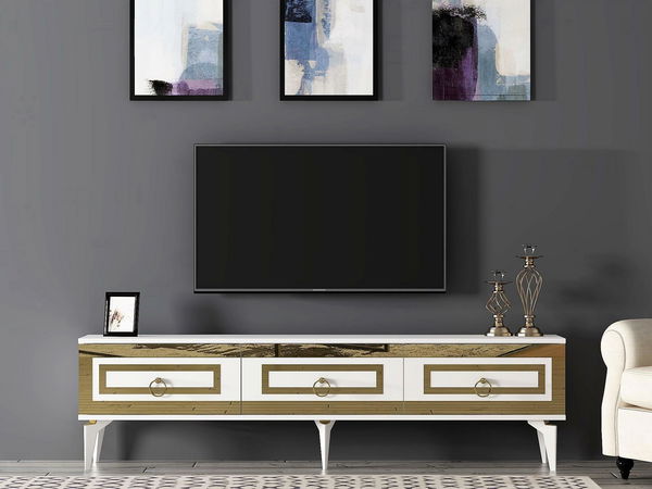 TV stolík/skrinka Pemava 2 (biela + zlatá)