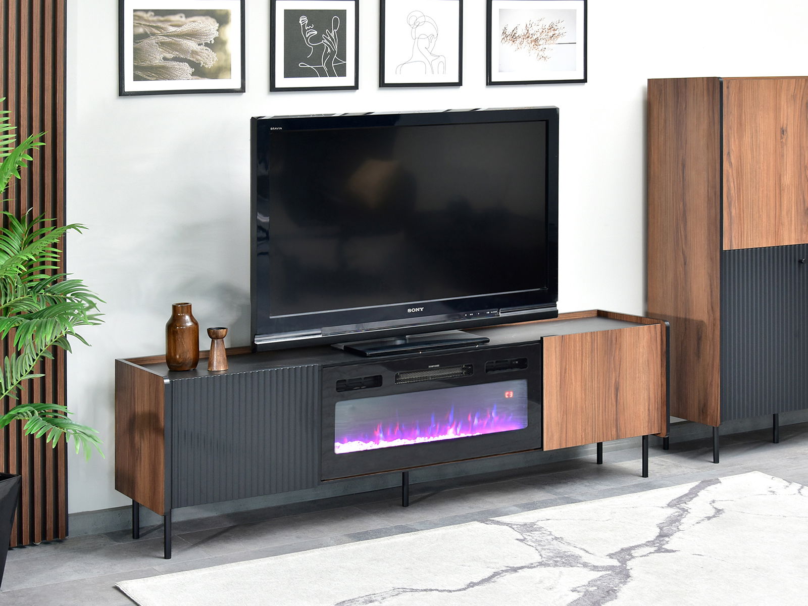 TV stolík/skrinka Protegidas P17 (čierna) (s krbom)