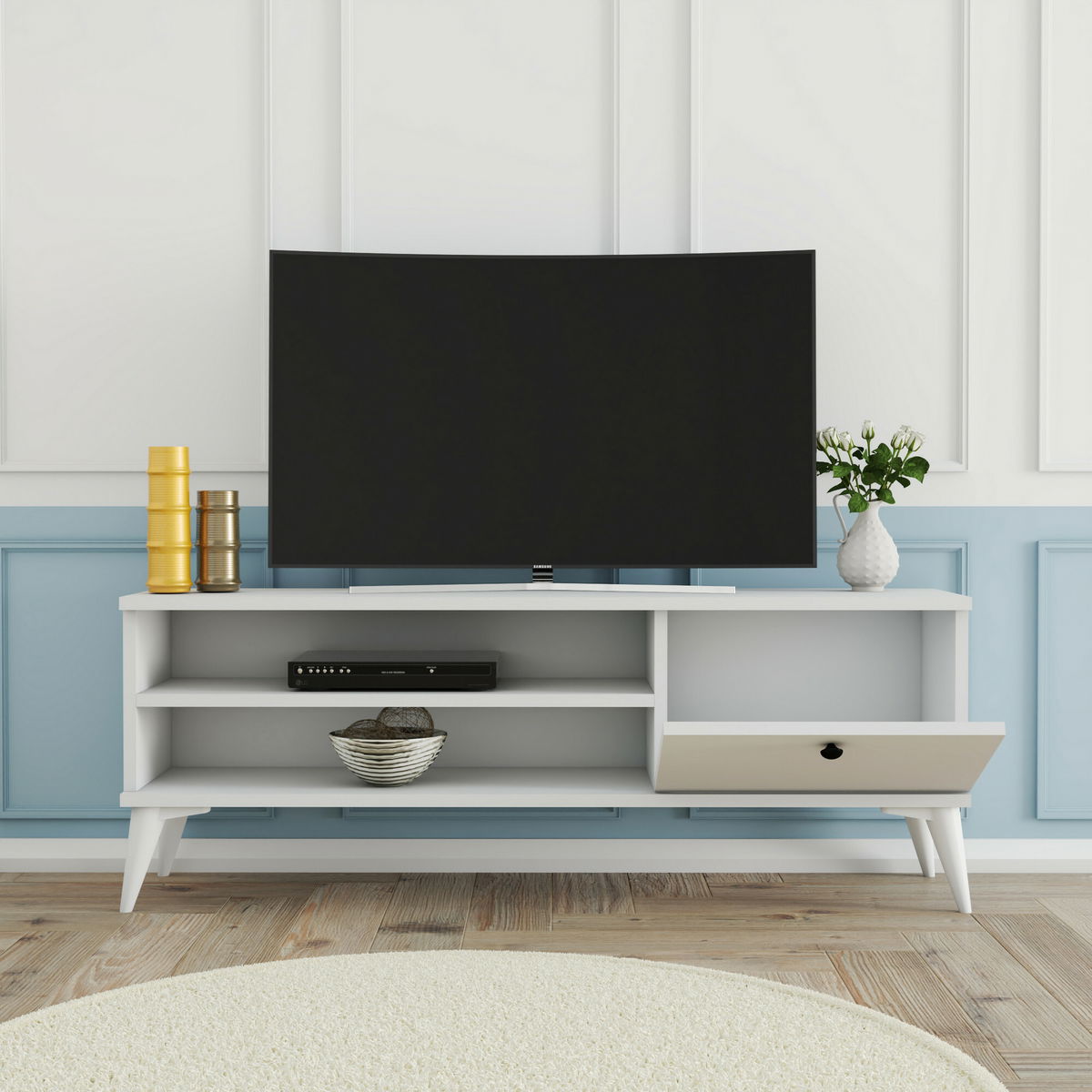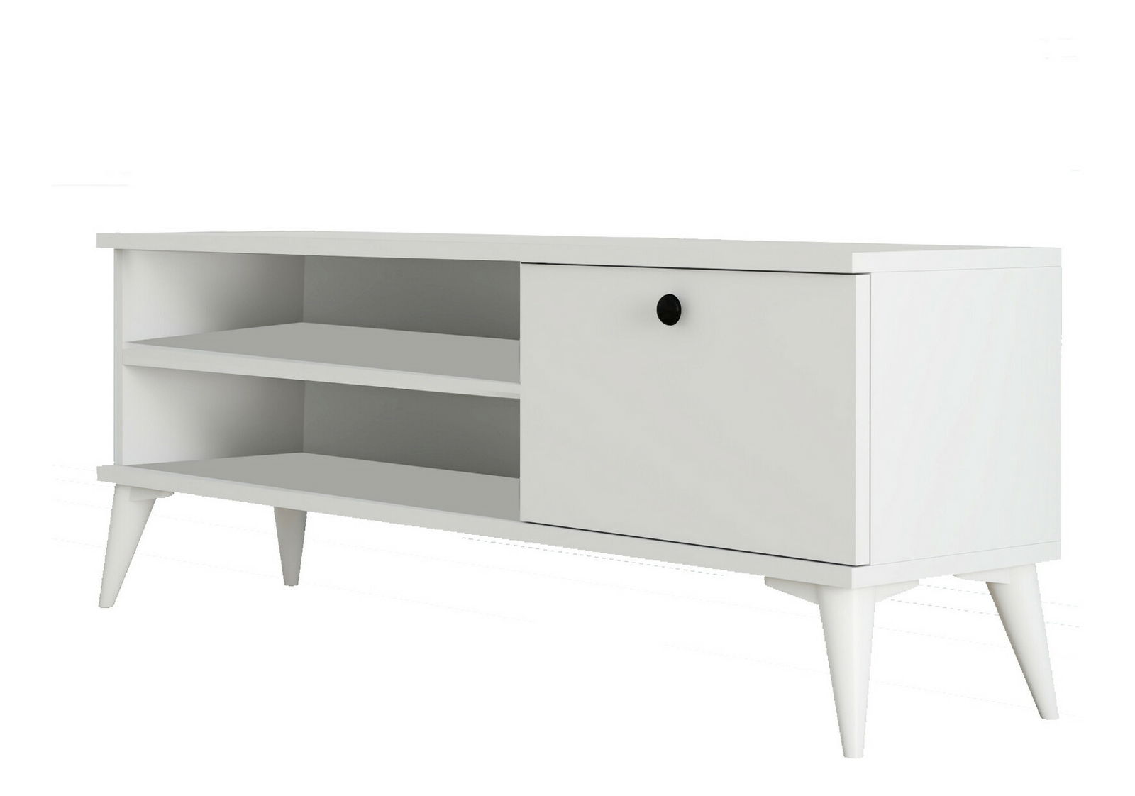 TV stolík/skrinka Retry 2 je skvelým doplnkom pre váš obývačkový priestor. S výškou 44,6 cm, šírkou 120 cm a hĺbkou 29,5 cm, tento biely stolík je praktický a funkčný. Jeho konštrukcia z 100% melamínovej dosky zaručuje trvanlivosť a odolnosť. Retry 2 ponúka dostatok úložného priestoru pre vaše televízne príslušenstvo, knihy a ďalšie veci. Jeho moderný dizajn a jednoduché línie ho robia ideálnym pre tých, ktorí hľadajú štýlový nábytok s praktickými vlastnosťami. S TV stolíkom/skrinkou Retry 2 si užijete pohodlné sledovanie obľúbených filmov a seriálov v jedinečnej atmosfére vášho domova.