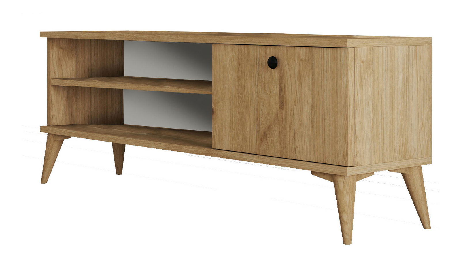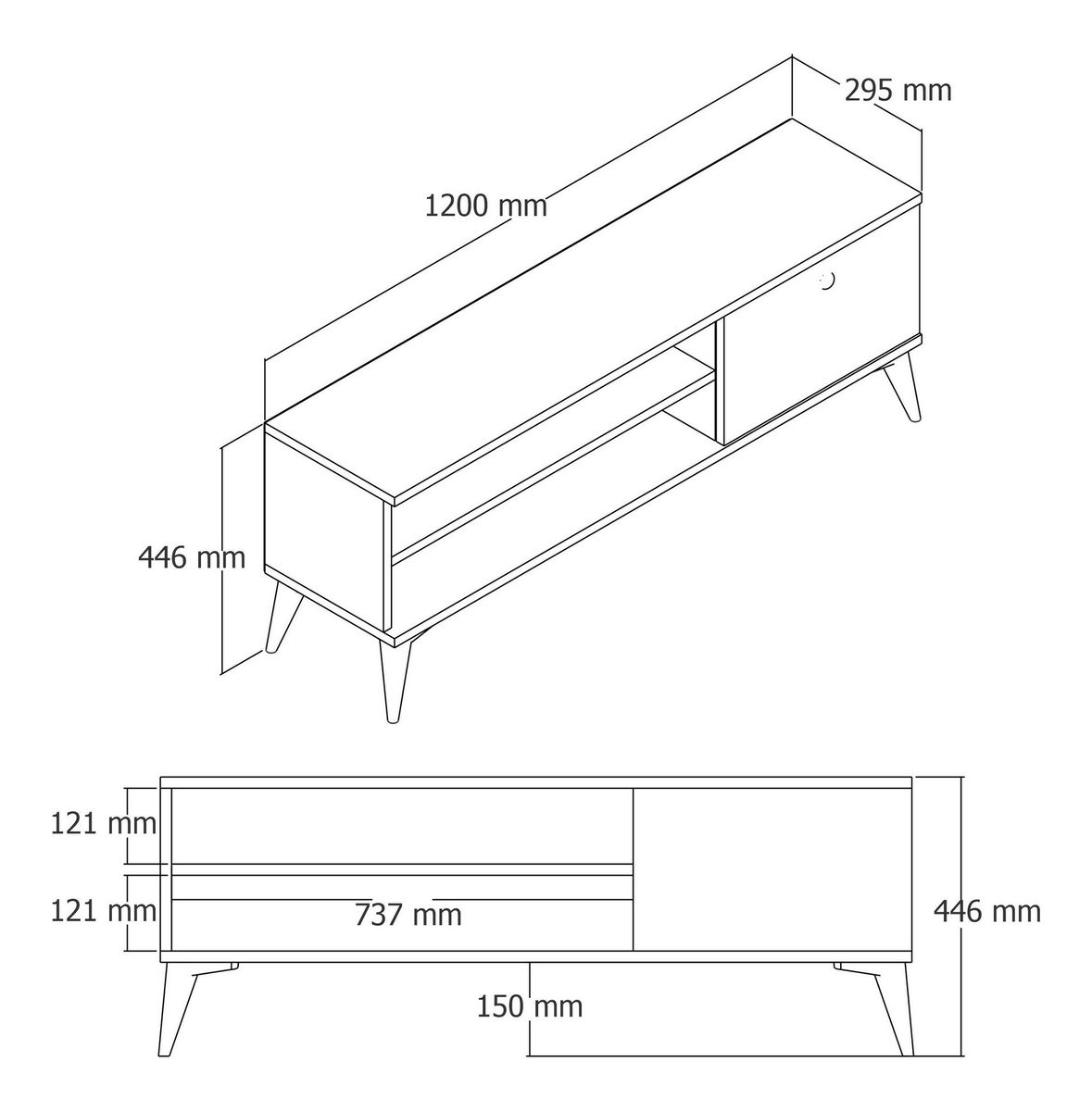 TV stolík/skrinka - Retry je praktický kus nábytku, ktorý je ideálny pre každú obývaciu izbu. S výškou 44,6 cm, šírkou 120 cm a hĺbkou 29,5 cm poskytuje dostatok priestoru na usporiadanie vašich audiovizuálnych zariadení. Materiál z 100% melamínovej dosky zaručuje trvanlivosť a odolnosť voči poškriabaniu a opotrebeniu. Retry prichádza v dubovom odtieni, ktorý sa ľahko hodí k akémukoľvek interiéru. Tento TV stolík/skrinka je skvelou voľbou pre tých, ktorí hľadajú kvalitný a funkčný nábytok pre svoju televíznu zostavu.