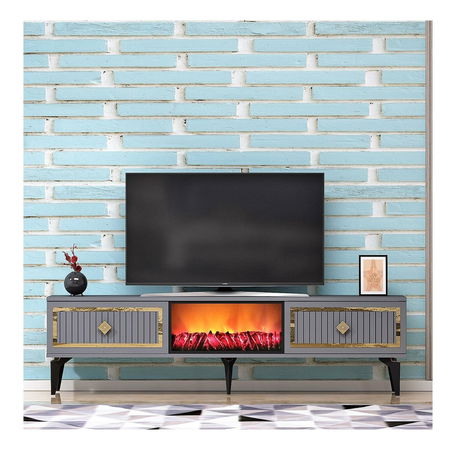 TV stolík/skrinka s krbom Kebive (antracit + zlatá)