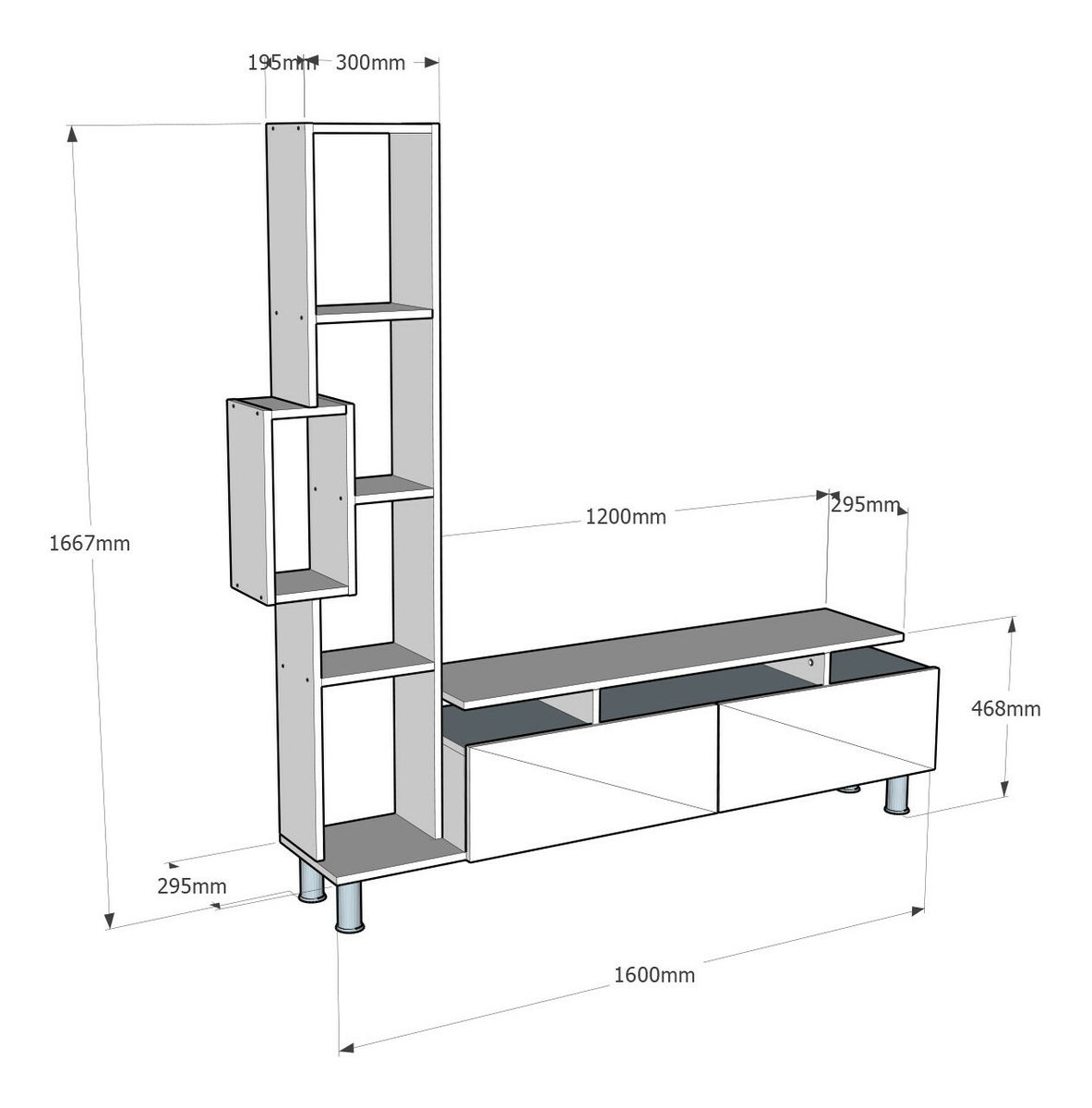 Tento TV stolík/skrinka s poličkou Tullia (biela) je vynikajúcim doplnkom pre vašu obývaciu izbu. S výškou 166 cm, šírkou 160 cm a hĺbkou 29,5 cm poskytuje dostatok miesta pre vašu televíziu a ďalšie zariadenia. Vyrobil sa z 100% melamínovej dosky z drobnice, čo zaručuje jeho odolnosť a trvácnosť. Môžete si byť istí, že tento stolík bude slúžiť vašej rodine dlhé roky. Okrem toho, jeho biela farba dodáva vášmu interiéru štýlový a moderný vzhľad. S jeho poličkou budete môcť uložiť svoje obľúbené knihy, dekorácie a ďalšie veci, ktoré sa vám páčia. Tento TV stolík/skrinka s poličkou Tullia (biela) je skvelou investíciou pre každého, kto chce vylepšiť svoje obývacie priestory a udržať ich usporiadané a čisté.