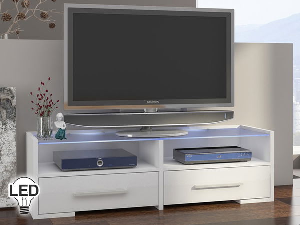 Nádhernú atmosféru po zotmení vie navodiť práve tento TV stolík. Navyše je veľmi praktický s dvomi otvorenými odkladacími priestormi a dvomi zásuvkami.