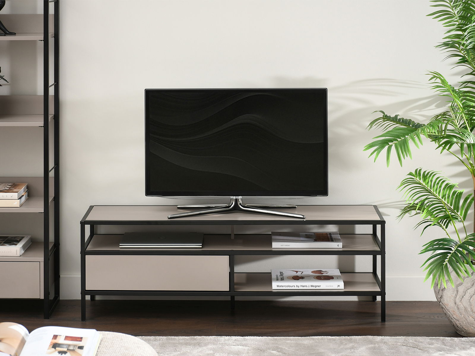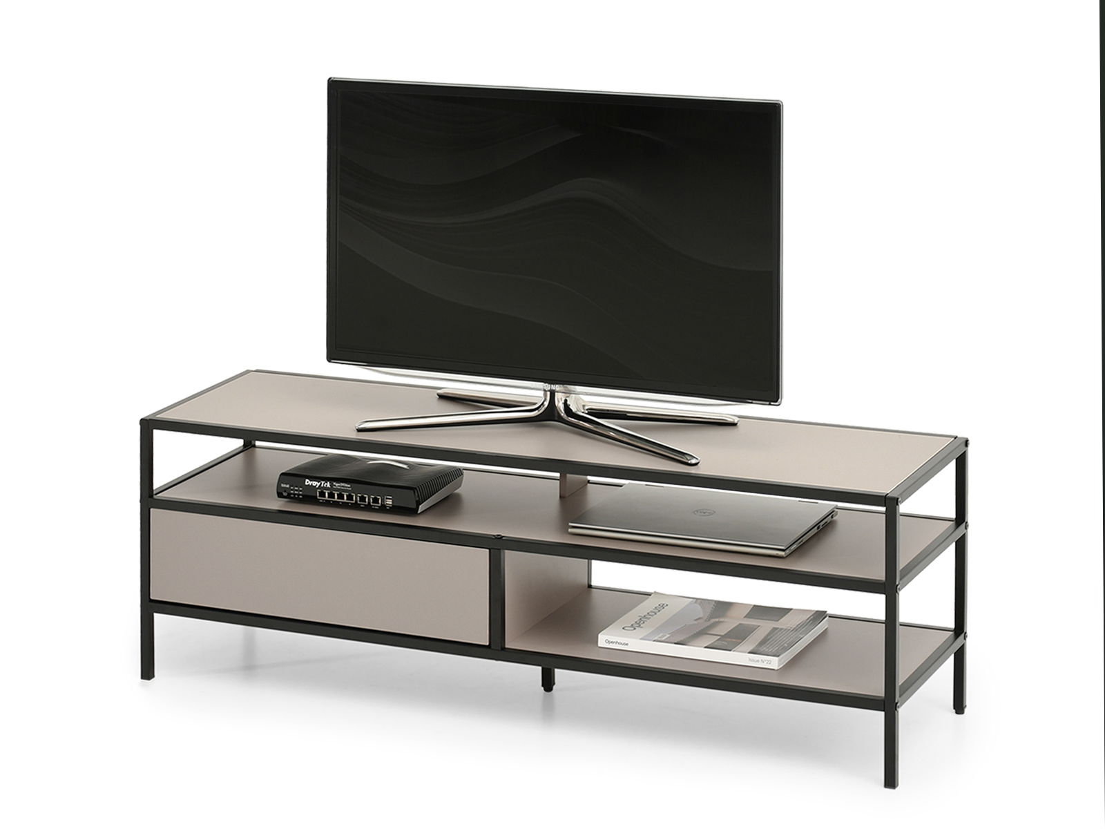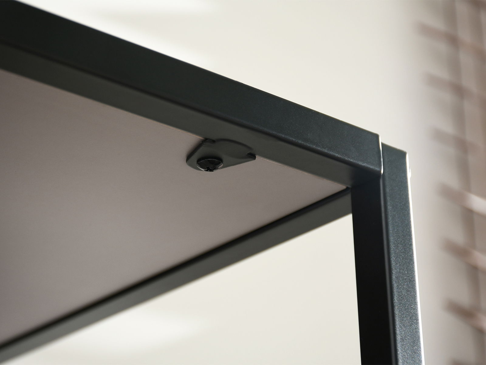 obdĺžniková stolová doska, s otvorenými policami, so zásuvkou, vodiace lišty so systémom otvárania push-to-open