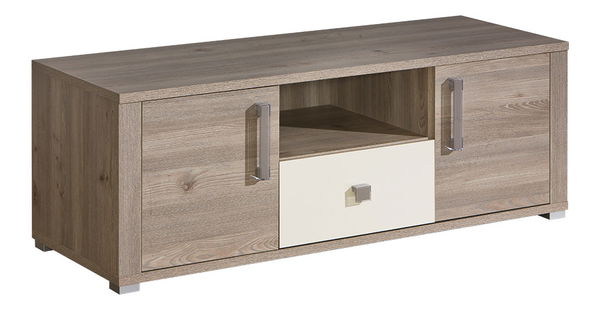 TV stolík je sa dá využiť aj ako nízka skrina, ktorú môžete umiestniť do obývačky, predsiene alebo aj spálne. Výhodou je, že má aj pristor na audio/video, takže ide ako skrinka pod TV ideálna. Skrinky, zásuvka a polička sa ale dajú využiť aj na odkladanie iných vecí a maličkostí potrebných v domácnosti. Skrinka je vyrobená z laminátových dosiek.