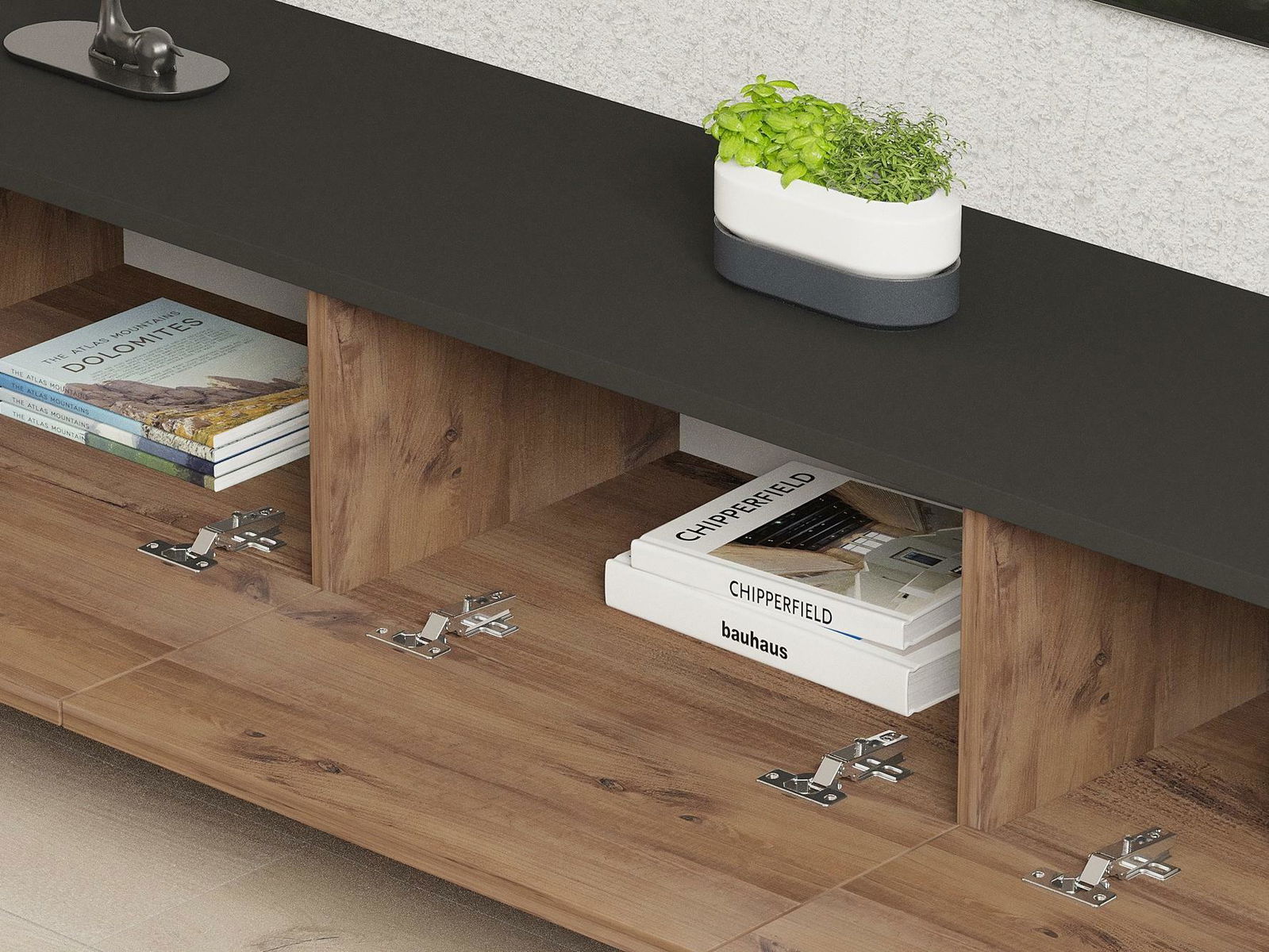 - TV stolík/skrinka Vusato (čierna + dub zafírový)