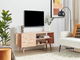 Tento krásny TV stolík vyrobený z kaučukového dreva bude pútavým doplnkom každého moderného priestoru. Vďaka svetlému tónu a viditeľnej kresbe dreva ponúka prirodzený vzhľad, ktorý sa hodí ku každému štýlu, od škandinávskeho až po rustikálny. Je skvelým miestom pre televíziu, môžete ho však doplniť aj zarámovanými fotografiami alebo vázou s kvetmi. V prípade, že chcete niektoré veci ukryť do úložného priestoru, je tu skrinka s dvierkami a dvomi policami. Stolík môžete využiť v obývacom priestore alebo v ktorejkoľvek inej miestnosti, do ktorej chcete pridať ďalší úložný priestor.