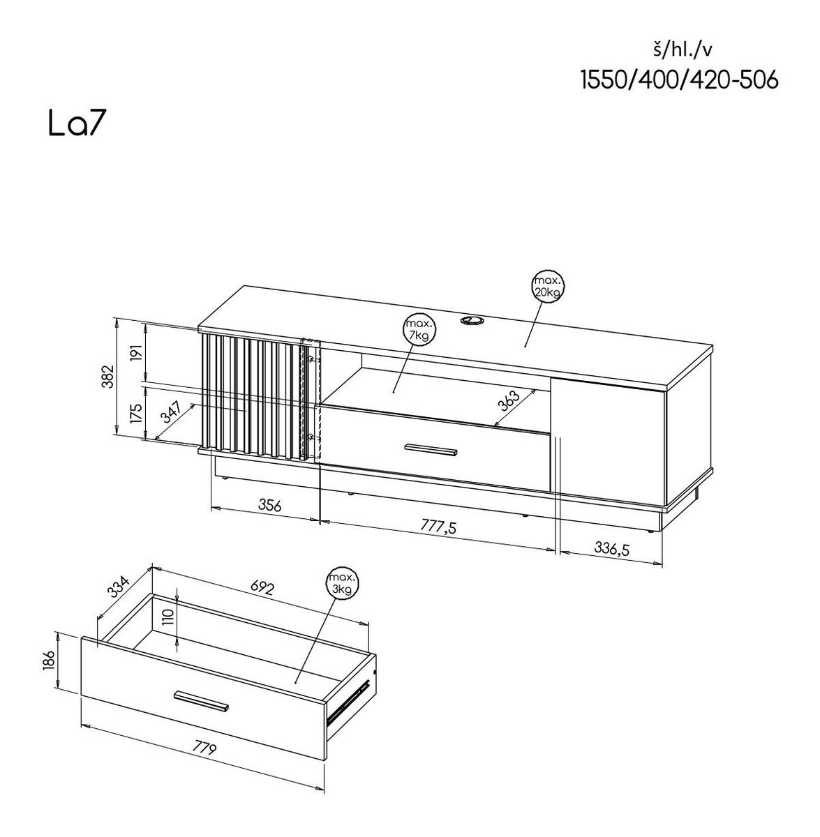 TV stolík typ LA7 Laticia (matna čierna + dub wotan)