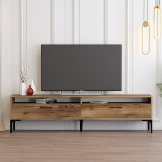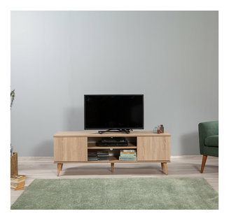 Akciové drevené široké tv stolíky (nerohové) s miestom pre audio/video (bez skla) v akcii až mínus -80%